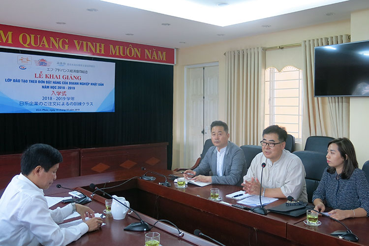 GS. Jeong Jae Hwang - Giám đốc trung tâm quan hệ quốc tế - Trường Cao đẳng tỉnh Chungcheobuk - Hàn Quốc phát biểu tại buổi làm việc