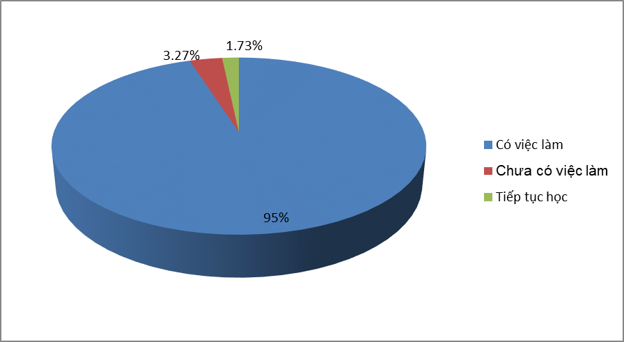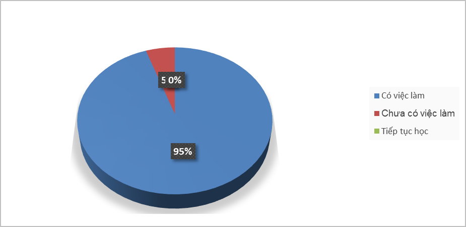 Trong Bảng số liệu trên có 95% có thông tin phản hồi đã có việc làm; 5% sinh viên TN chưa có việc làm. Như vậy tỷ lệ SVTN có việc làm hoặc đang học lên cao là: 95%