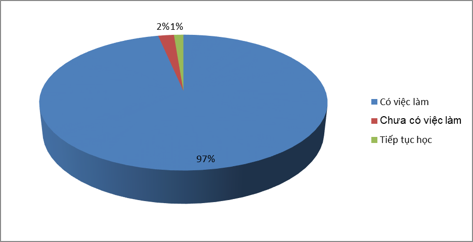 Trong Bảng số liệu trên có 97% có thông tin phản hồi đã có việc làm; 1% SVTN tiếp tục đi học nâng cao trình độ rồi mới có ý định tìm việc làm; 2% sinh viên TN chưa có việc làm. Như vậy tỷ lệ SVTN có việc làm hoặc đang học lên cao là: 98%