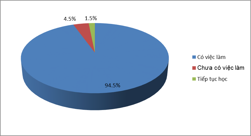 Trong Bảng số liệu trên có 94% có thông tin phản hồi đã có việc làm; 6% SVTN chưa có việc làm. Như vậy tỷ lệ SVTN có việc làm hoặc đang học lên cao là 94%