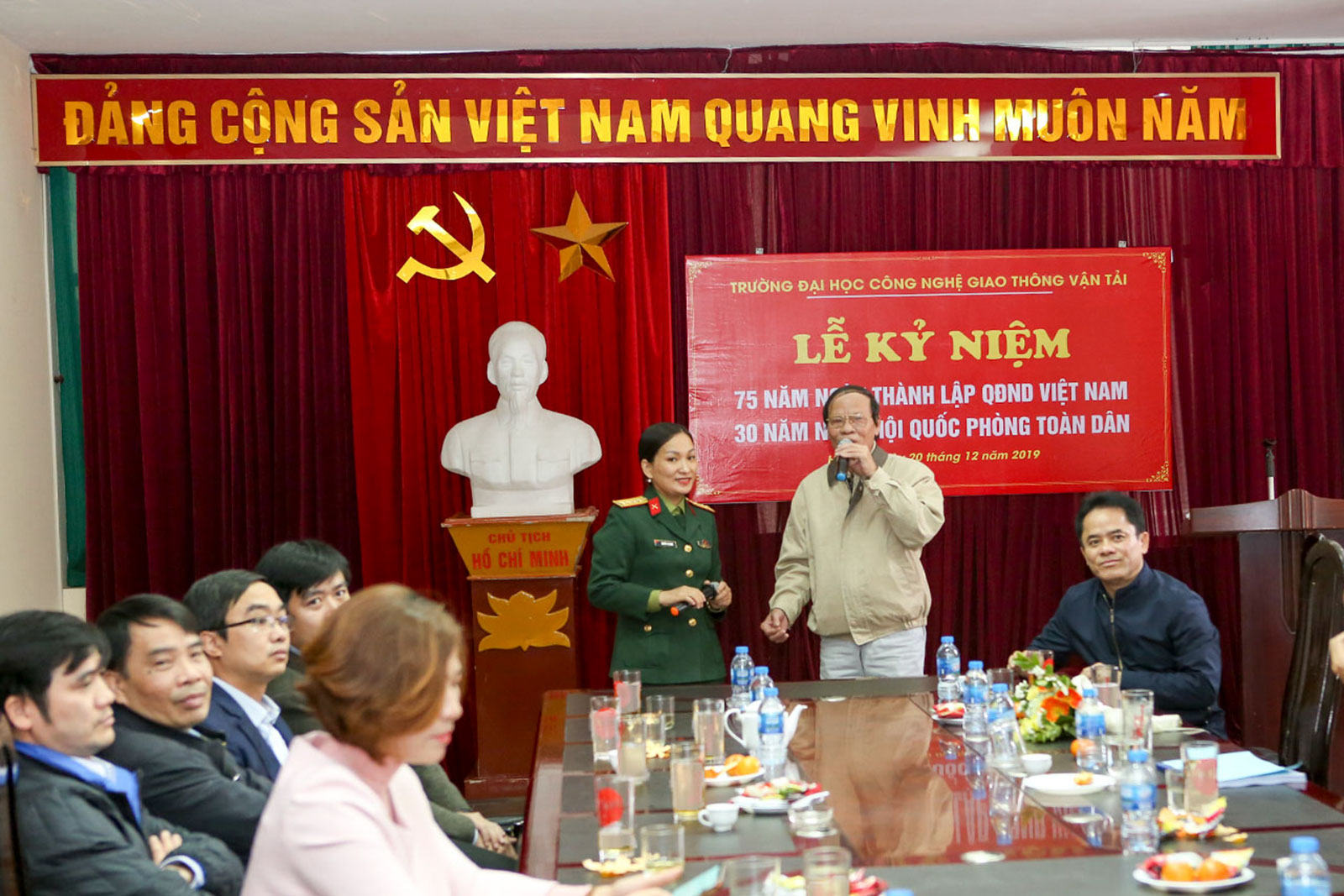 Ngày 20/12/2019, Trường Đại học Công nghệ Giao thông vận tải tổ chức buổi gặp mặt các cựu chiến binh và sĩ quan dự bị nhân kỷ niệm 75 năm Ngày thành lập Quân đội nhân dân Việt Nam (22/12/1944- 22/12/2019) và 30 năm ngày Hội quốc phòng toàn dân (22/12/1989-22/12/2019).