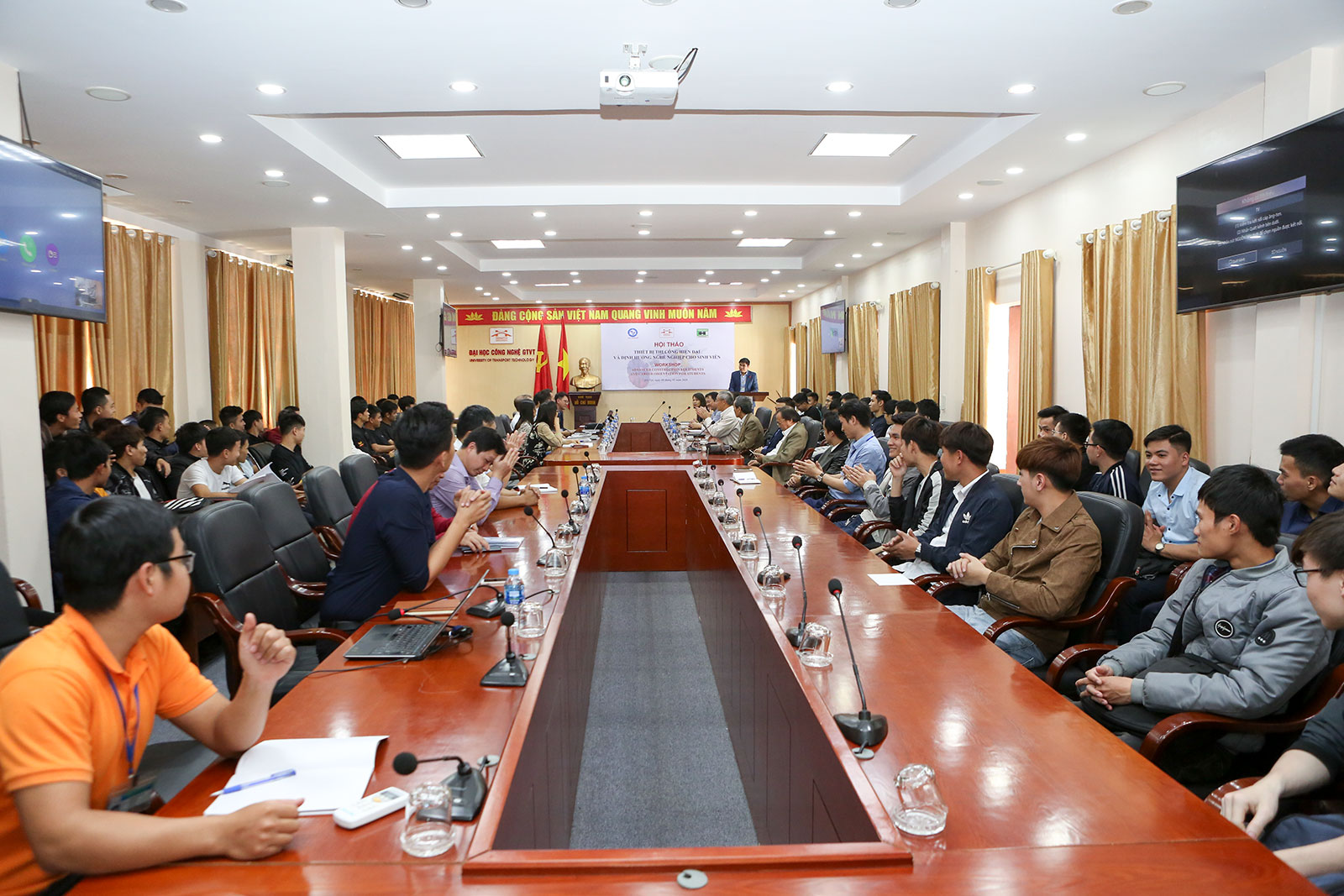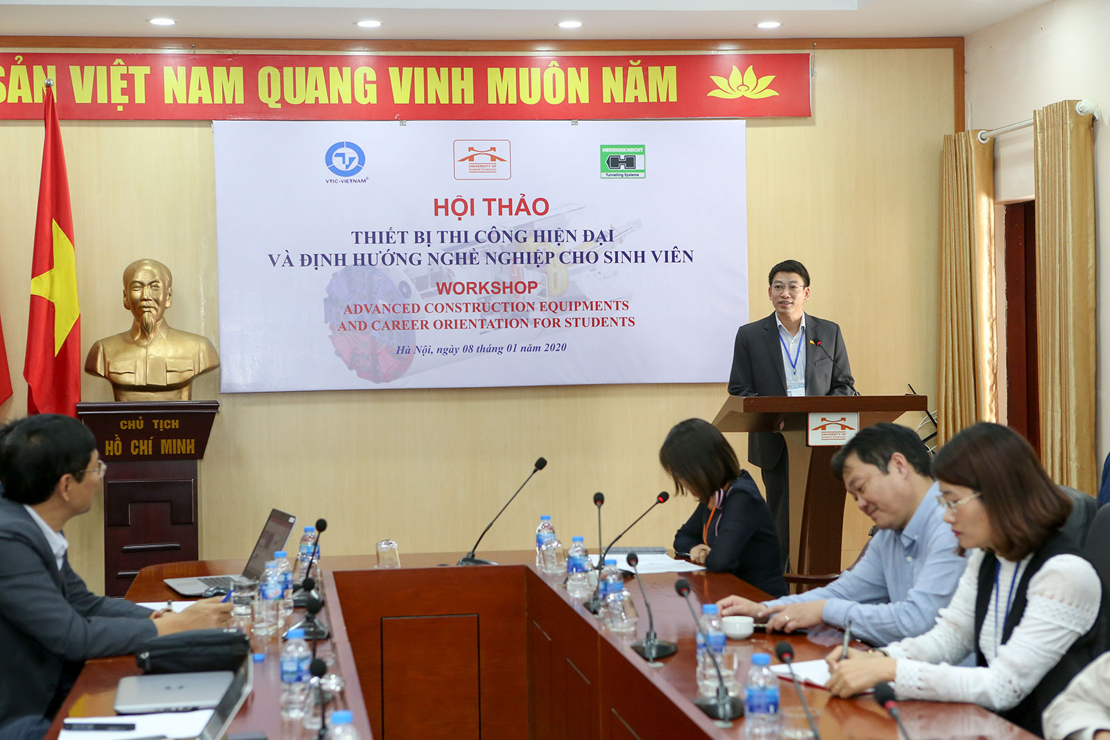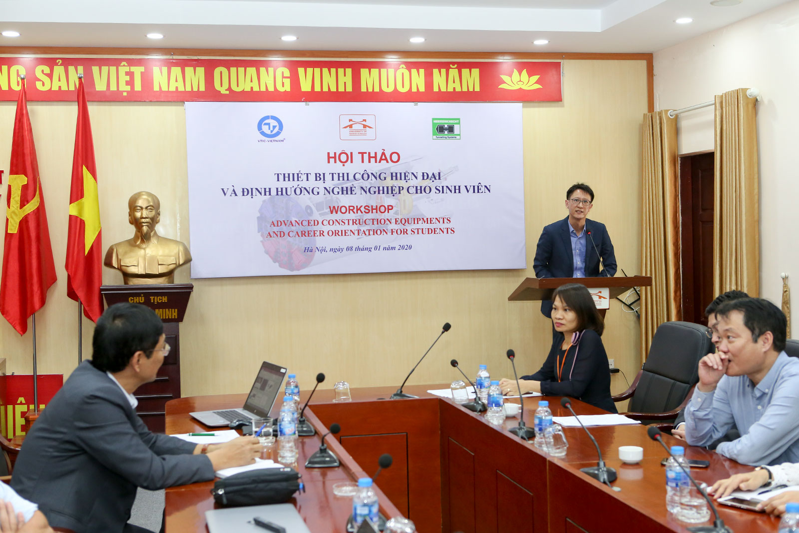 Ngày 08/01/2020, Trường Đại học Công nghệ GTVT tổ chức Hội thảo về Thiết bị thi công hiện đại và định hướng nghề nghiệp cho sinh viên. Với mục tiêu tăng cường sự liên kết giữa Nhà trường và Doanh nghiệp trong các lĩnh vực đào tạo, nghiên cứu khoa học và chuyển giao công nghệ nhằm hỗ trợ sinh viên trong quá trình học tập và sau khi tốt nghiệp ra Trường.