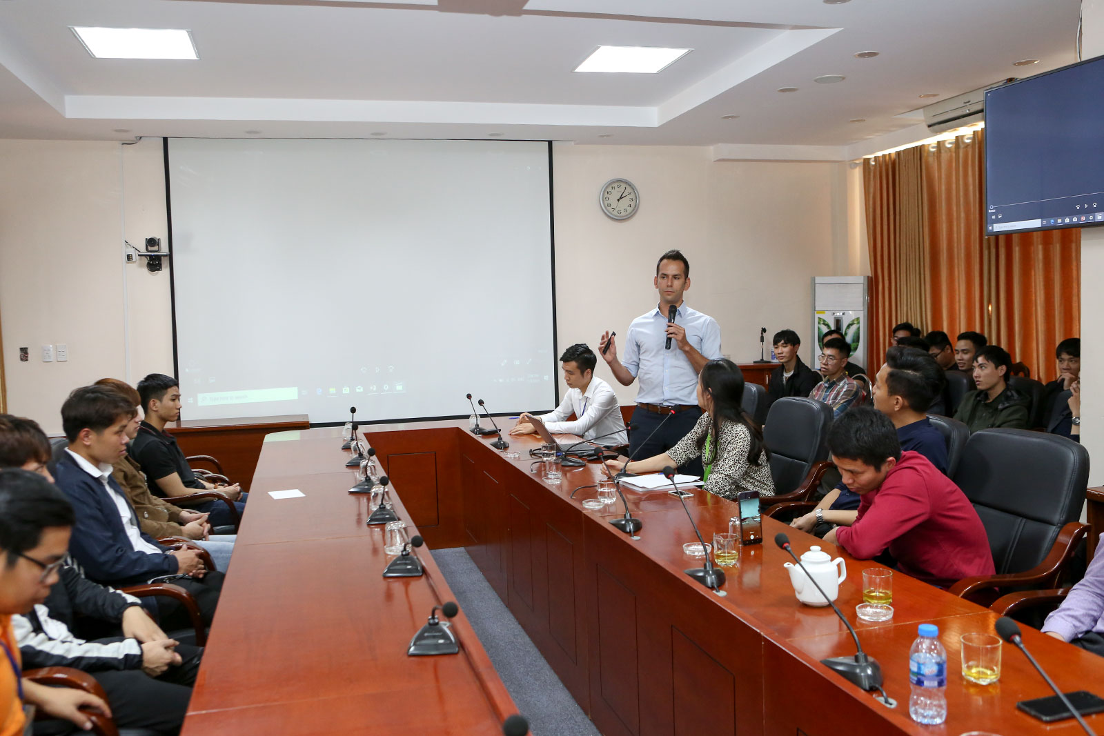 Phát biểu tại buổi Hội thảo, ông Jeremy Lee - Phó Tổng giám đốc Tập đoàn HerrenKnecht thay mặt các chuyên gia cảm ơn sự đón tiếp trang trọng của Nhà trường dành cho Đoàn. Ông Lee mong muốn sinh viên học tập tốt để làm chủ công nghệ hiện đại và đề xuất một số hướng hợp tác giữa Nhà trường và Tập đoàn trong thời gian tới.
