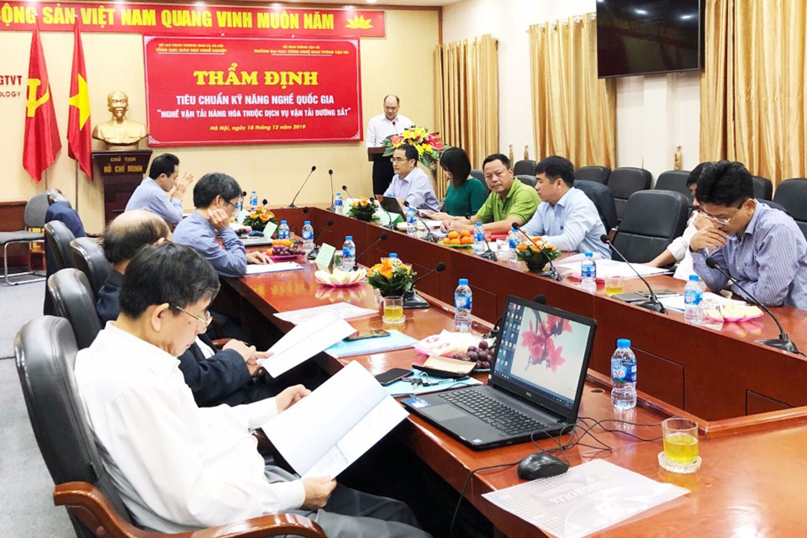 Tham dự Hội đồng thẩm định, về phía Hội đồng gồm 9 thành viên, do TS. Vũ Chí Trường - Vụ trưởng Vụ kỹ năng nghề (Tổng cục Giáo dục nghề nghiệp) - Chủ tịch Hội đồng; ThS. Trương Thị Ngọc Hồi - chuyên viên Vụ kỹ năng nghề - Thư ký Hội đồng cùng với 7 thành viên đến từ Cục Đường sắt Việt Nam; Hiệp hội kinh tế vận tải Đường sắt Việt Nam; Tổng công ty Đường sắt Việt Nam; Trường Cao đẳng Đường sắt. Về phía Bộ GTVT có ông Nguyễn Văn Nghĩa - Chuyên viên chính, Phụ trách đào tạo bồi dưỡng, Vụ Tổ chức cán bộ (Bộ GTVT); về phía Nhà trường có PGS.TS. Vũ Ngọc Khiêm - Phó Bí thư Đảng ủy, Phó hiệu trưởng; TS. Hoàng Văn Lâm - Trưởng Bộ môn Logistics và Vận tải đa phương thức - Tổ trưởng tổ xây dựng Tiêu chuẩn Kỹ năng nghề quốc gia (KNNQG); cùng với 12 thành viên trong Tổ xây dựng tiêu chuẩn KNNQG đang công tác tại Bộ GTVT, Hiệp hội Doanh nghiệp dịch vụ Logistics Việt Nam, các đơn vị ngành đường sắt và Trường Đại học Công nghệ GTVT.