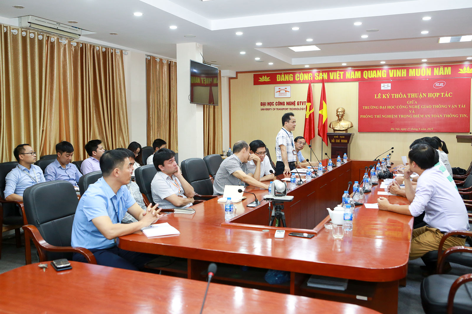 Ngày 27/9/2019, Trường Đại học Công nghệ Giao thông vận tải tổ chức Lễ Ký kết với Phòng Thí nghiệm trọng điểm an toàn thông tin trong việc phối hợp trao đổi thông tin, hỗ trợ, tư vấn, triển khai các giải pháp, sản phẩm về công nghệ thông tin, điện tử, viễn thông và an toàn thông tin mạng nhằm nâng cao trình độ, năng lực hoạt động.