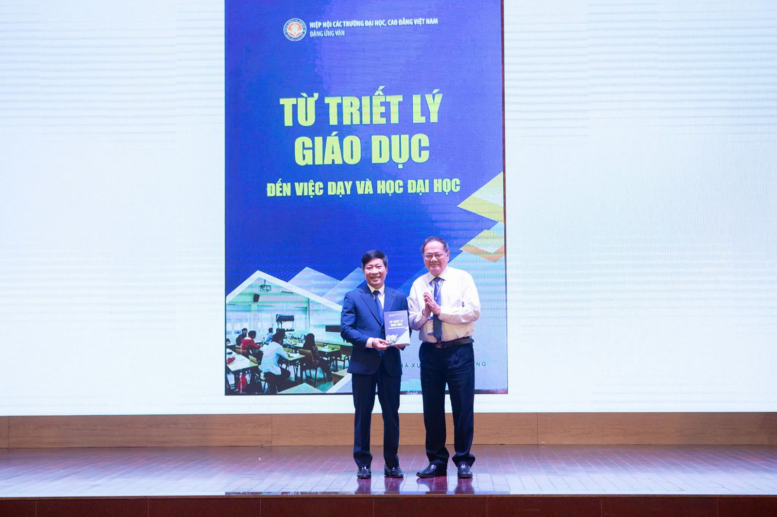 GS. TSKH. Đặng Ứng Vận tặng Lãnh đạo Nhà trường cuốn sách “Từ triết lý giáo dục đến việc dạy đại học"