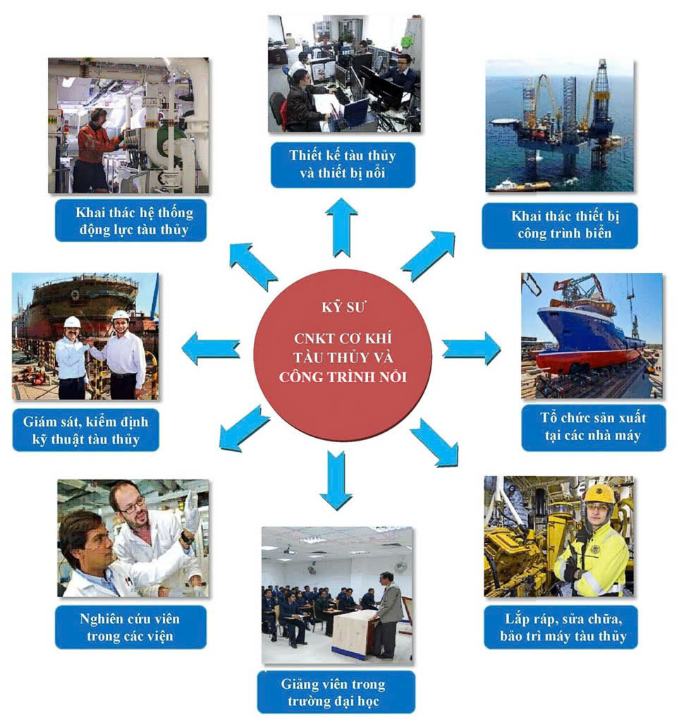 Chuyên ngành CNKT Cơ khí Tàu thủy và Công trình nổi đào tạo nên các kỹ sư có đủ năng lực về thiết kế kỹ thuật, thiết kế thi công, thiết kế quy trình lắp ráp và sửa chữa, thiết kế hoán cải, kiểm định và giám định các trang thiết bị của hệ thống năng lượng tàu thủy, công trình nổi, cũng như các lĩnh vực cơ khí khác.