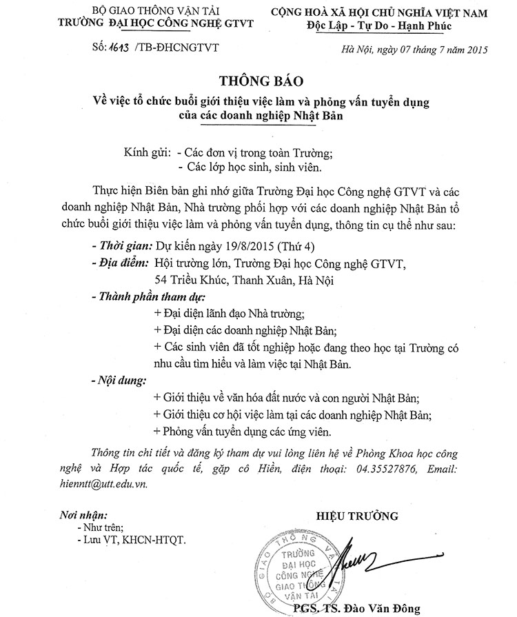 Tổ chức buổi giới thiệu việc làm và phỏng vấn tuyển dụng của các doanh nghiệp Nhật Bản