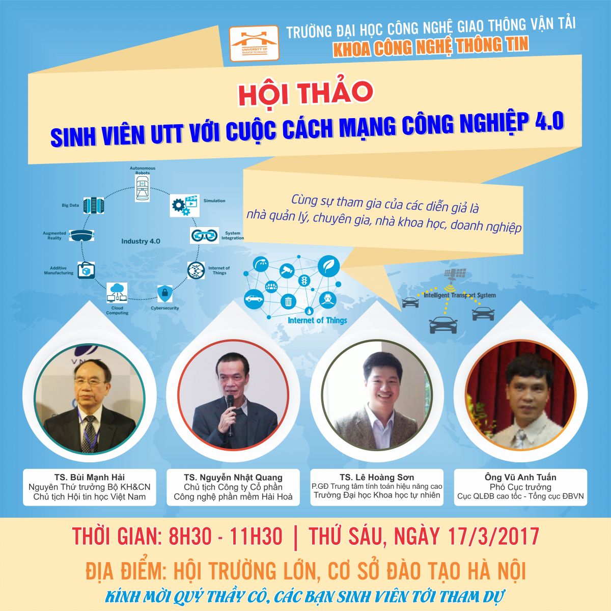 Nhằm cung cấp các thông tin về cuộc cách mạng công nghiệp 4.0, chuẩn bị hành trang cần thiết và các kỹ năng khởi nghiệp cho sinh viên ngành Công nghệ thông tin, Điện tử viễn thông, khoa Công nghệ thông tin - Trường Đại học Công nghệ GTVT tổ chức Hội thảo "Sinh viên UTT với cuộc cách mạng công nghiệp 4.0"