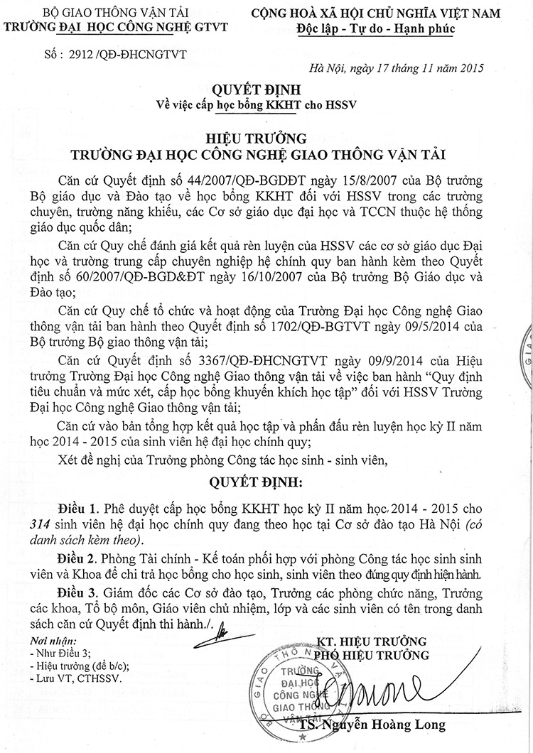 Ghi chú: - Mọi thắc mắc liên quan tới danh sách học bổng KKHT học kỳ II năm học 2014 - 2015 tại cơ sở đào tạo Hà Nội, sinh viên tới phòng 102 Nhà H3 để được giải đáp! - Thời gian nhận tiền học bổng KKHT sẽ được phòng Tài chính - Kế toán thông báo cụ thể sau.