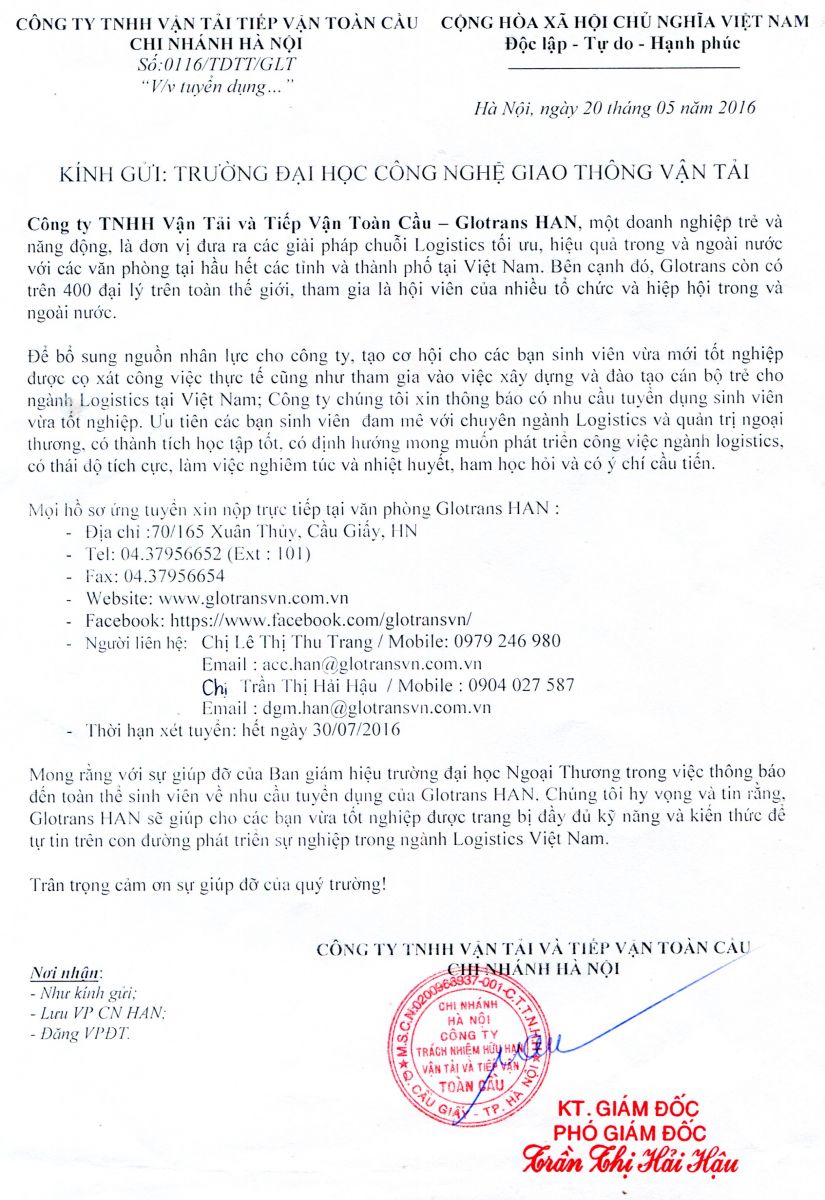 Công ty TNHH Vận tải & Tiếp vận toàn cầu tuyển dụng
