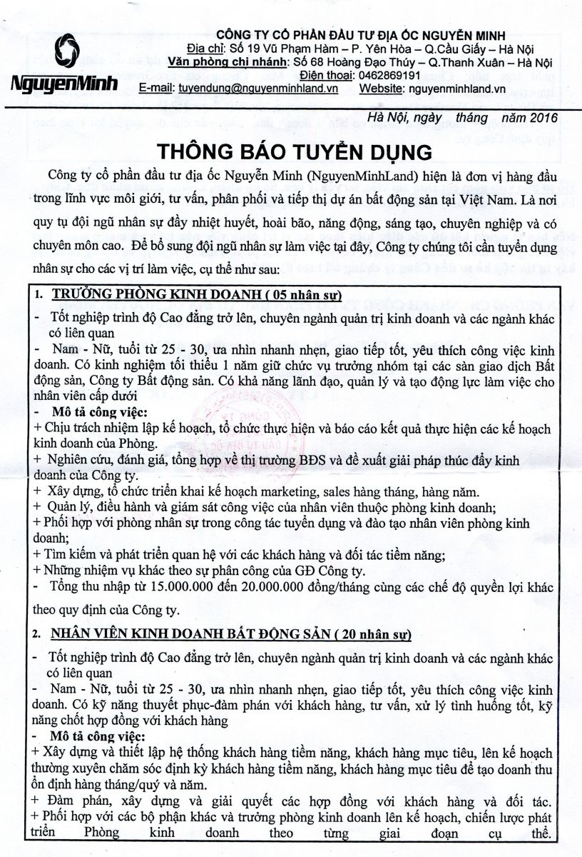 Tuyển trưởng phòng kinh doanh, nhân viên kinh doanh bất động sản