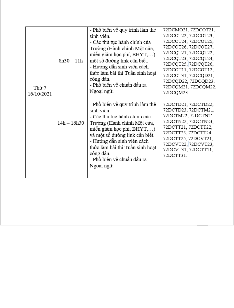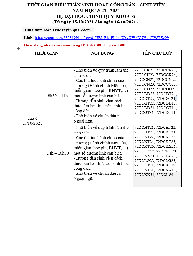 Thời khóa biểu tuần sinh hoạt công dân K72