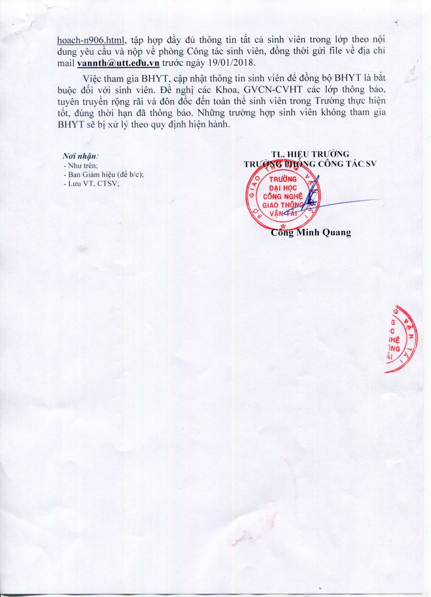 Thông báo về việc tham gia BHYT bắt buộc đối với sinh viên đợt 2 năm 2018