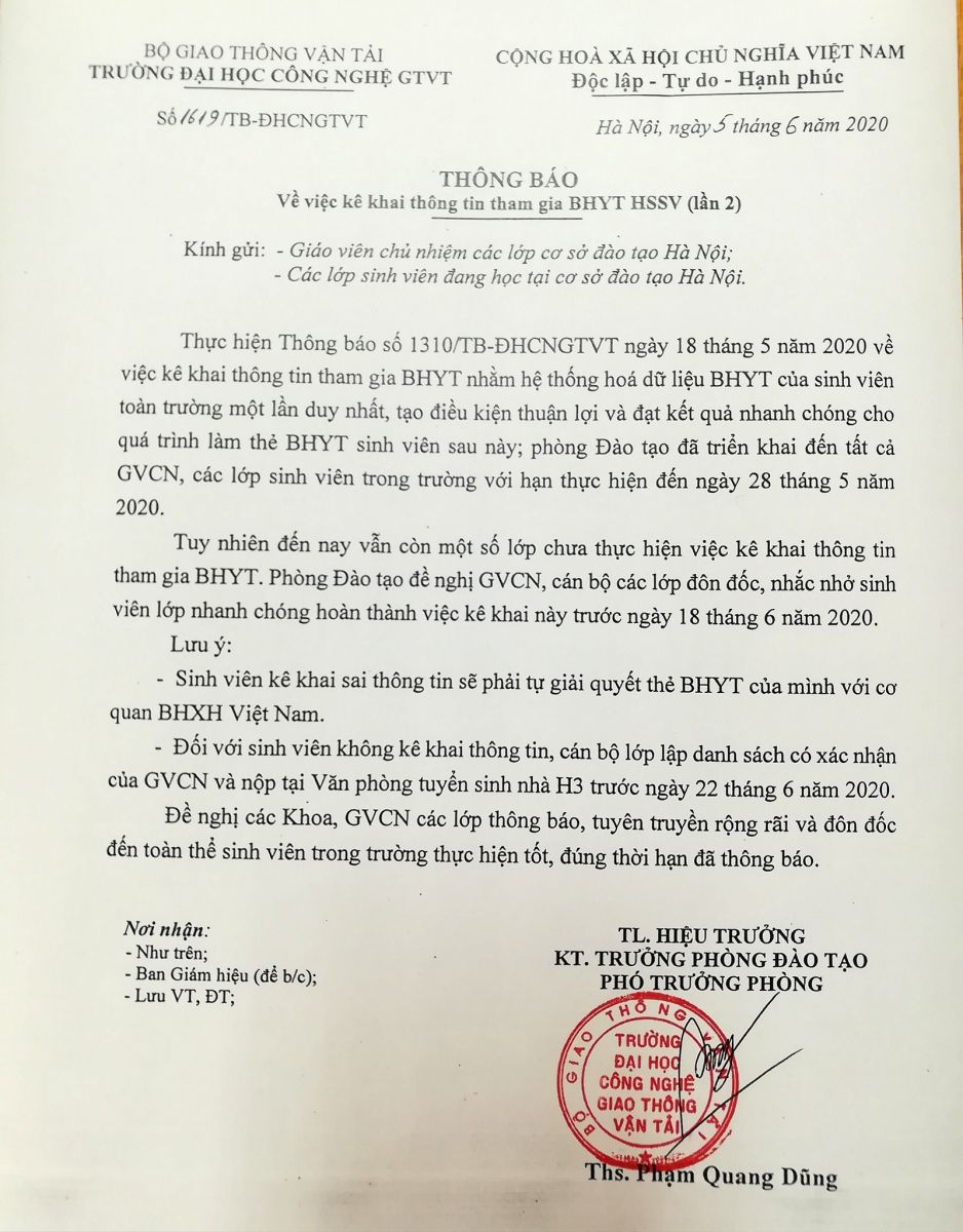 Thông báo về việc kê khai thông tin BHYT HSSV (lần 2)