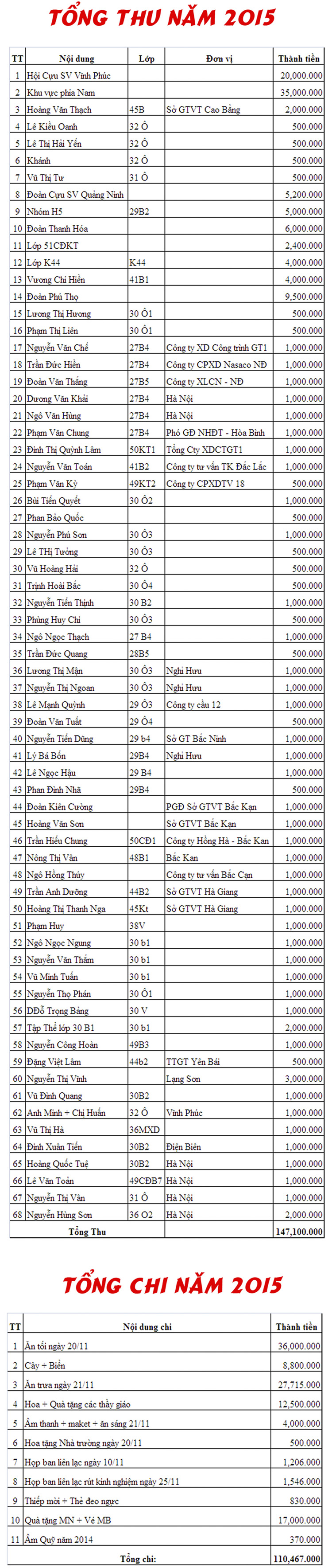 Tổng kết thu - chi Quỹ hội cựu HSSV năm 2015