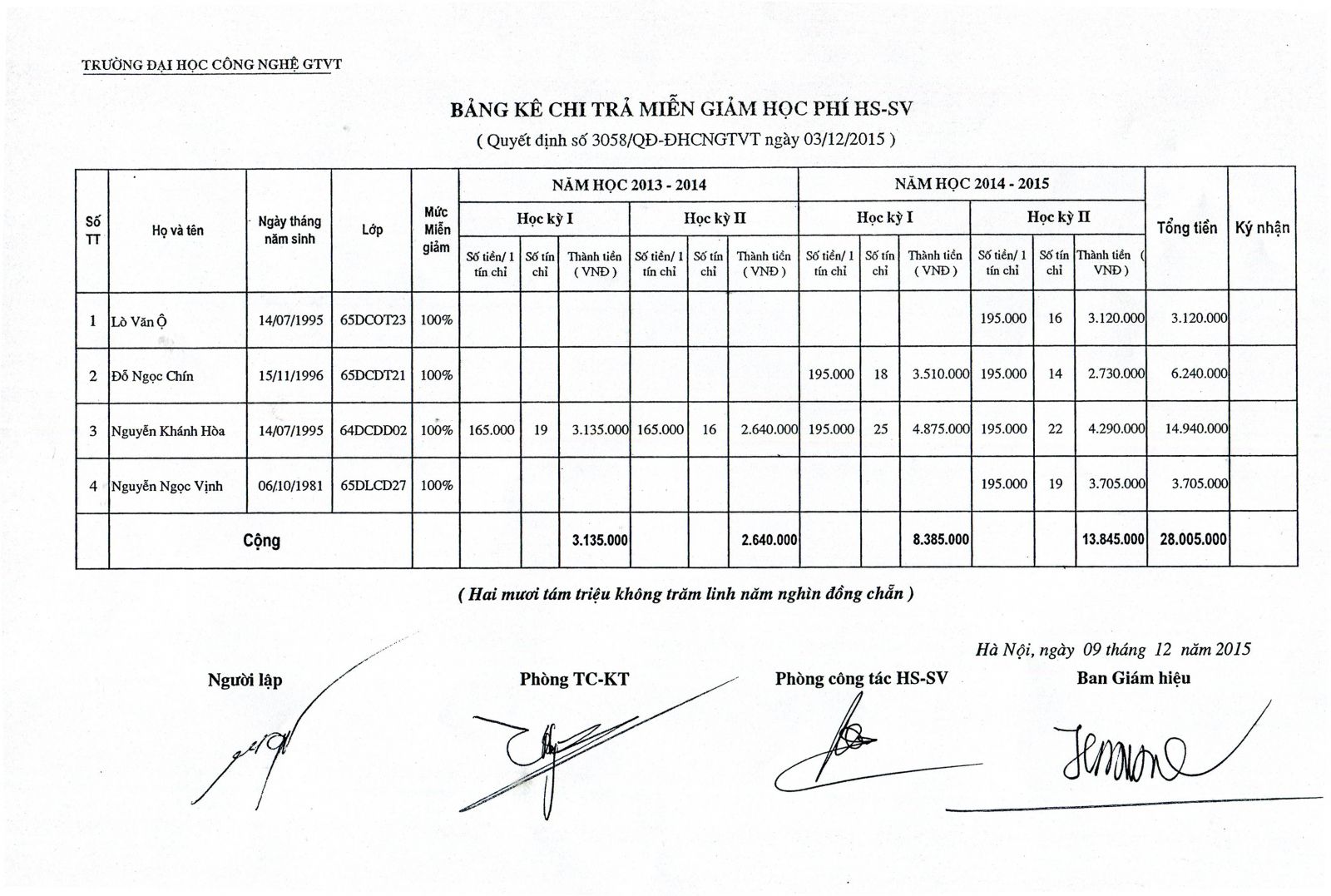 Thông báo về miễn giảm học phí năm học 2016 - 2017