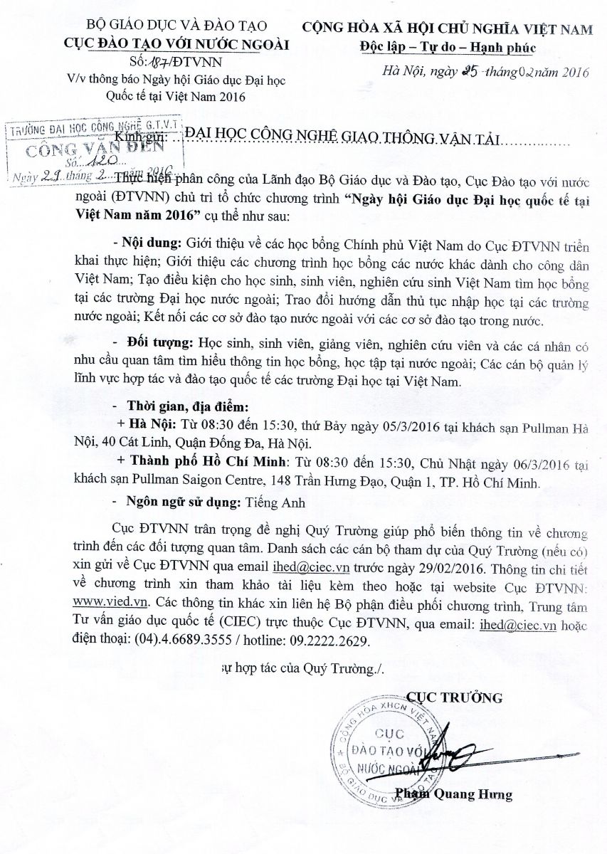Chương trình Ngày hội Giáo dục Đại học Quốc tế tại Việt Nam năm 2016