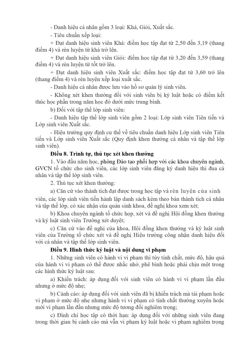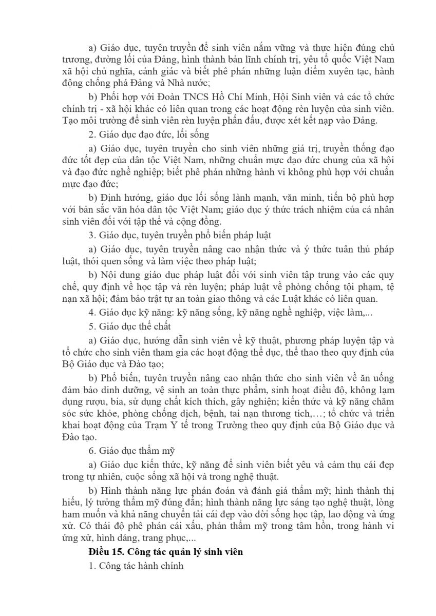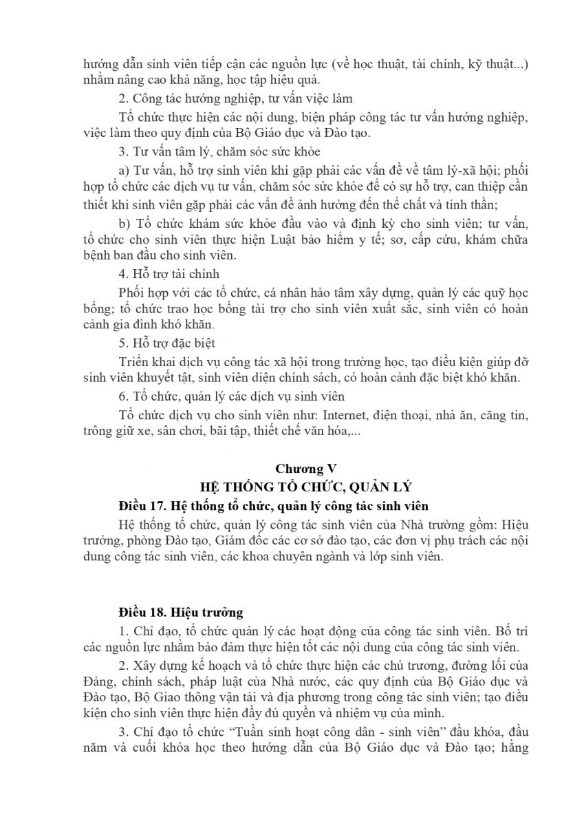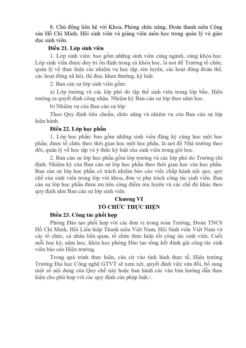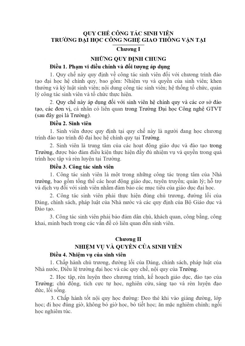 QUY CHẾ CÔNG TÁC SINH VIÊN TRƯỜNG ĐẠI HỌC CÔNG NGHỆ GIAO THÔNG VẬN TẢI