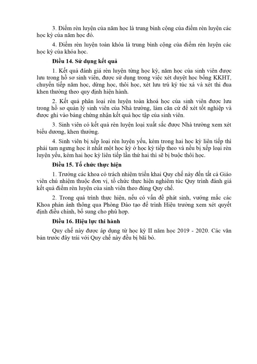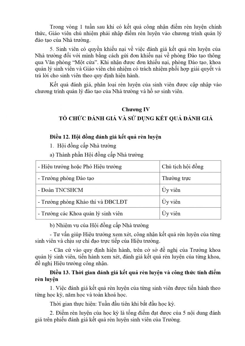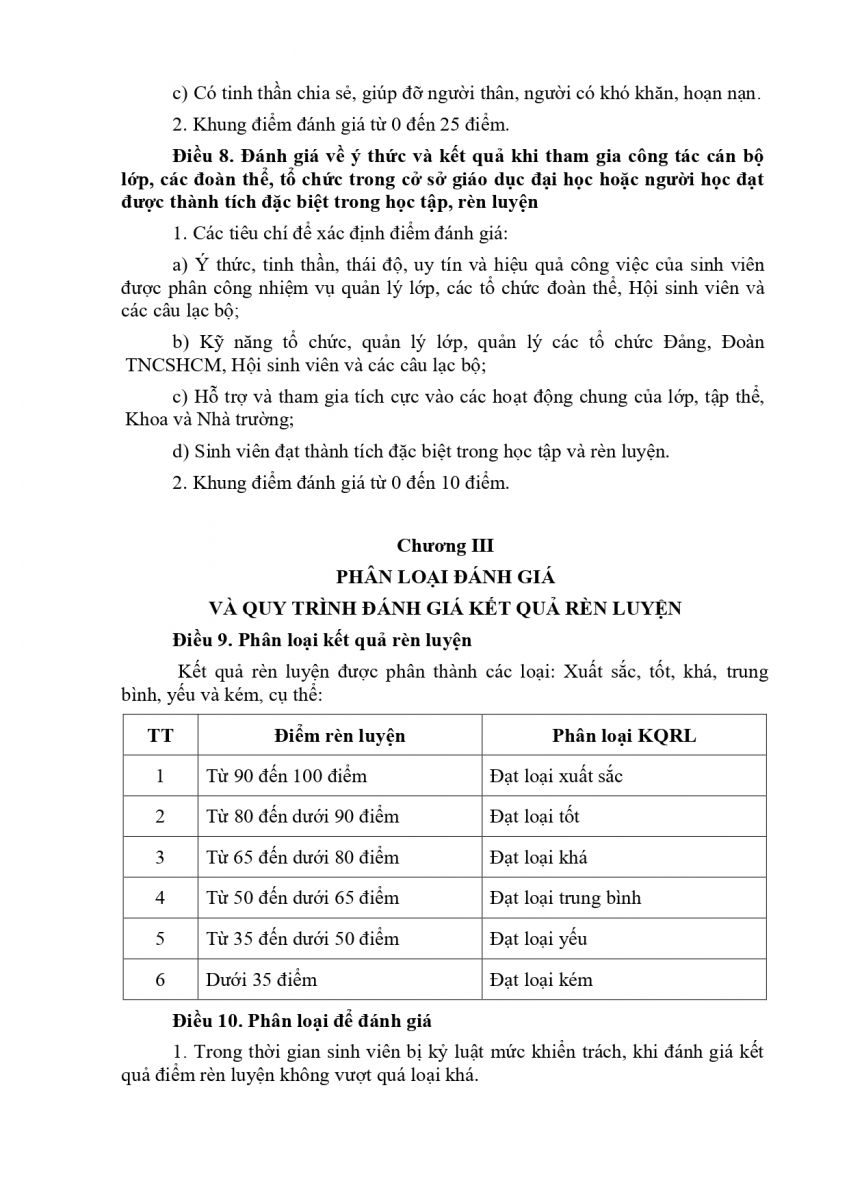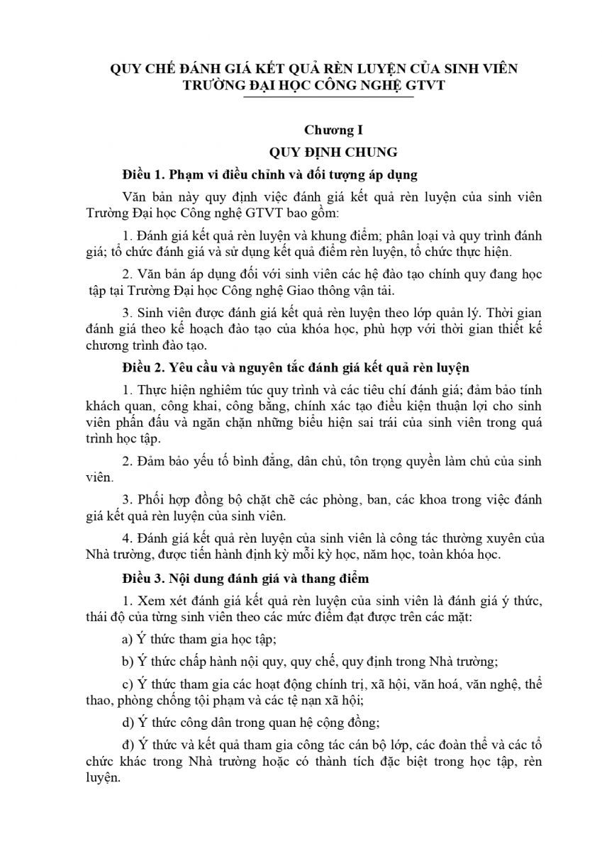 QUY CHẾ ĐÁNH GIÁ KẾT QUẢ RÈN LUYỆN CỦA SINH VIÊN TRƯỜNG ĐẠI HỌC CÔNG NGHỆ GTVT