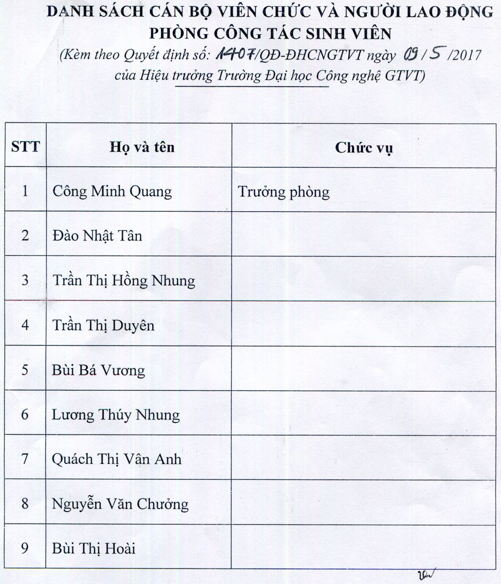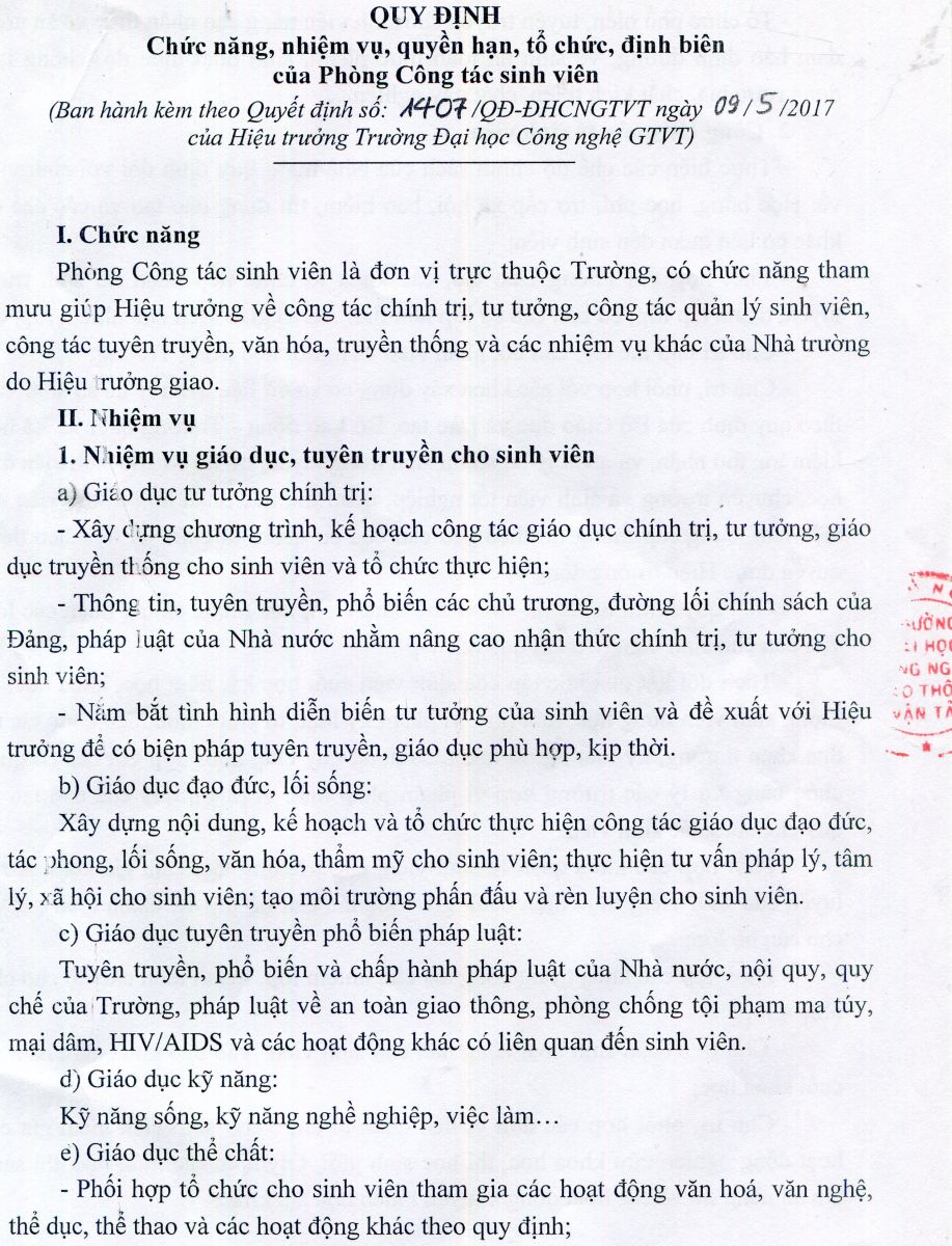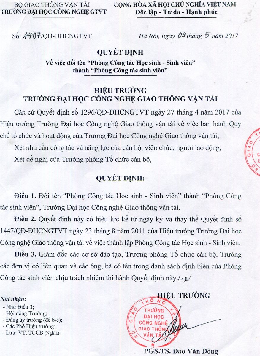 Quyết định về việc đổi tên \"Phòng Công tác Học sinh - Sinh viên\" thành \"Phòng Công tác Sinh viên\"