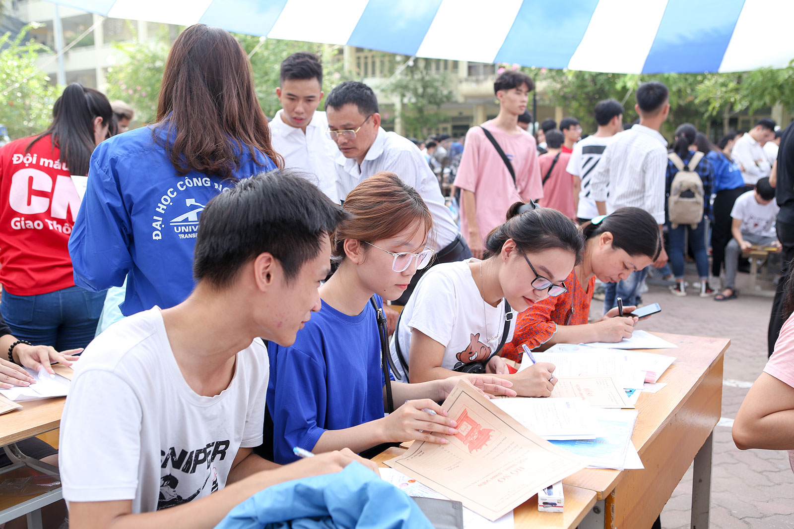 Trong đợt này, Nhà trường dự kiến sẽ đón tiếp hơn 2300 tân sinh viên đến nhập học. Trong thời gian làm thủ tục nhập học, lực lượng sinh viên tình nguyện được phân công hỗ trợ các em trong quá trình làm thủ tục và giúp đỡ phụ huynh và tân sinh viên bằng nhiều hoạt động thiết thực như: Hướng dẫn phụ huynh và sinh viên đến địa điểm làm thủ tục, ghi thông tin trên các giấy tờ, hướng dẫn quy trình làm thủ tục nhập học, hướng dẫn đăng ký Anh văn đầu vào, tài liệu học tập,…