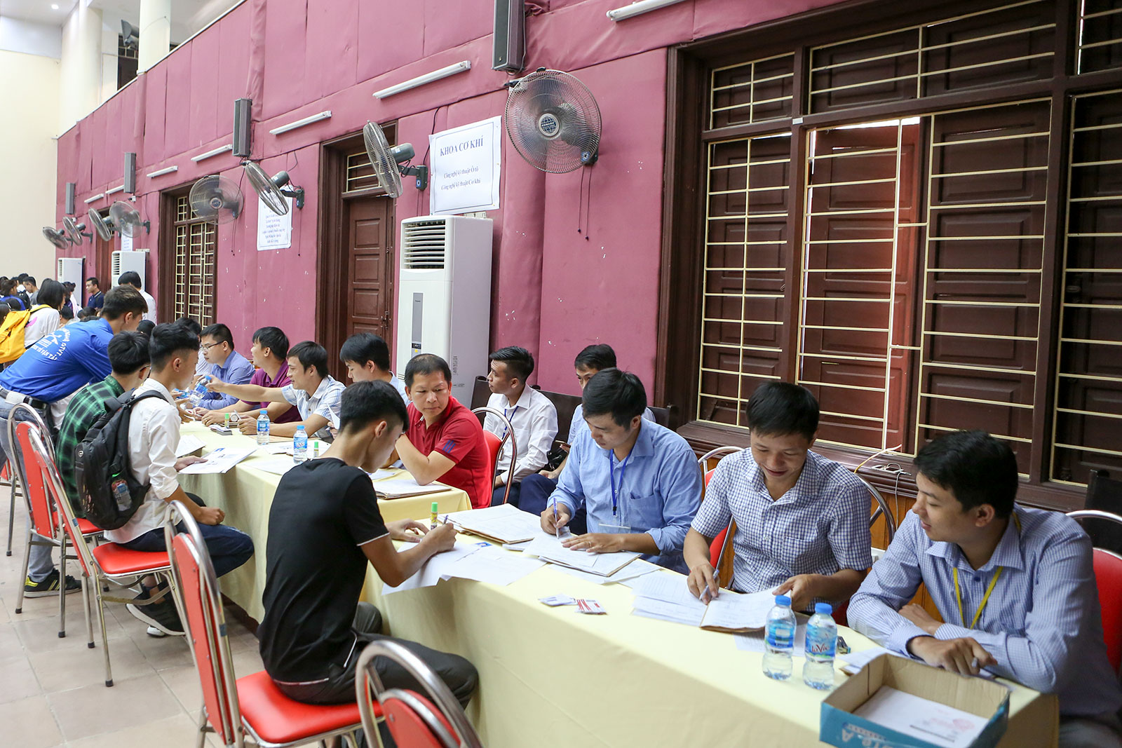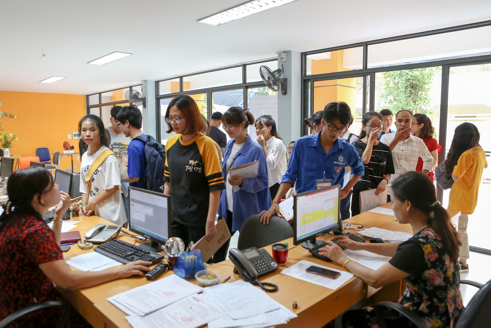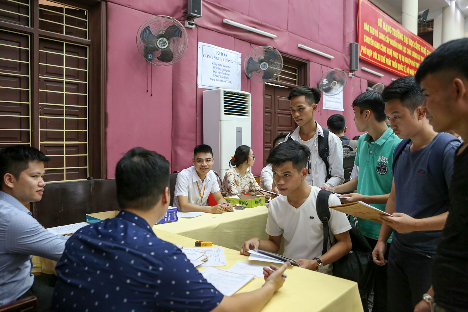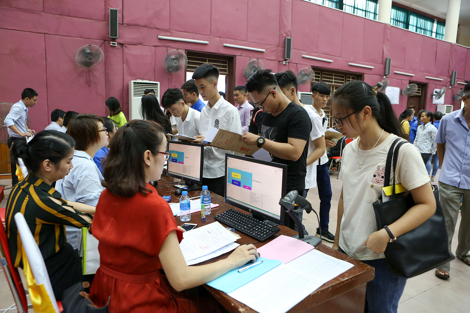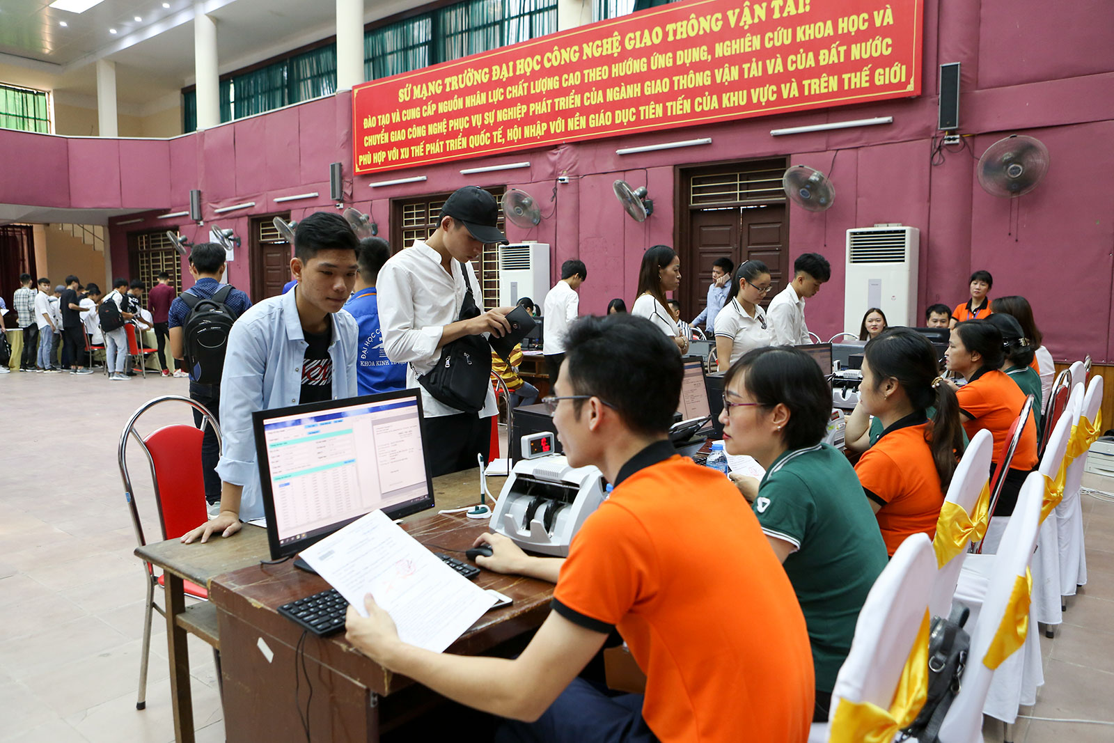 Từ sáng sớm, đã có rất đông tân sinh viên và người nhà của sinh viên tập trung về các cơ sở đào tạo của Nhà trường để bắt đầu làm thủ tục nhập học và tìm hiểu để ổn định chỗ ở sau khi nhập học. Các Khoa chuyên môn của Nhà trường đã cử các cán bộ của mình trực tiếp trực và đón tiếp, xử lý hồ sơ nhập học cho sinh viên theo sự phân công, do đó mọi thủ tục được tiến hành nhanh chóng. Bên cạnh đó Nhà trường đã xây dựng kế hoạch, bố trí khuôn viên để tiếp đón và tạo điều kiện cho các em có thể làm thủ tục nhanh chóng, đơn giản nhất.