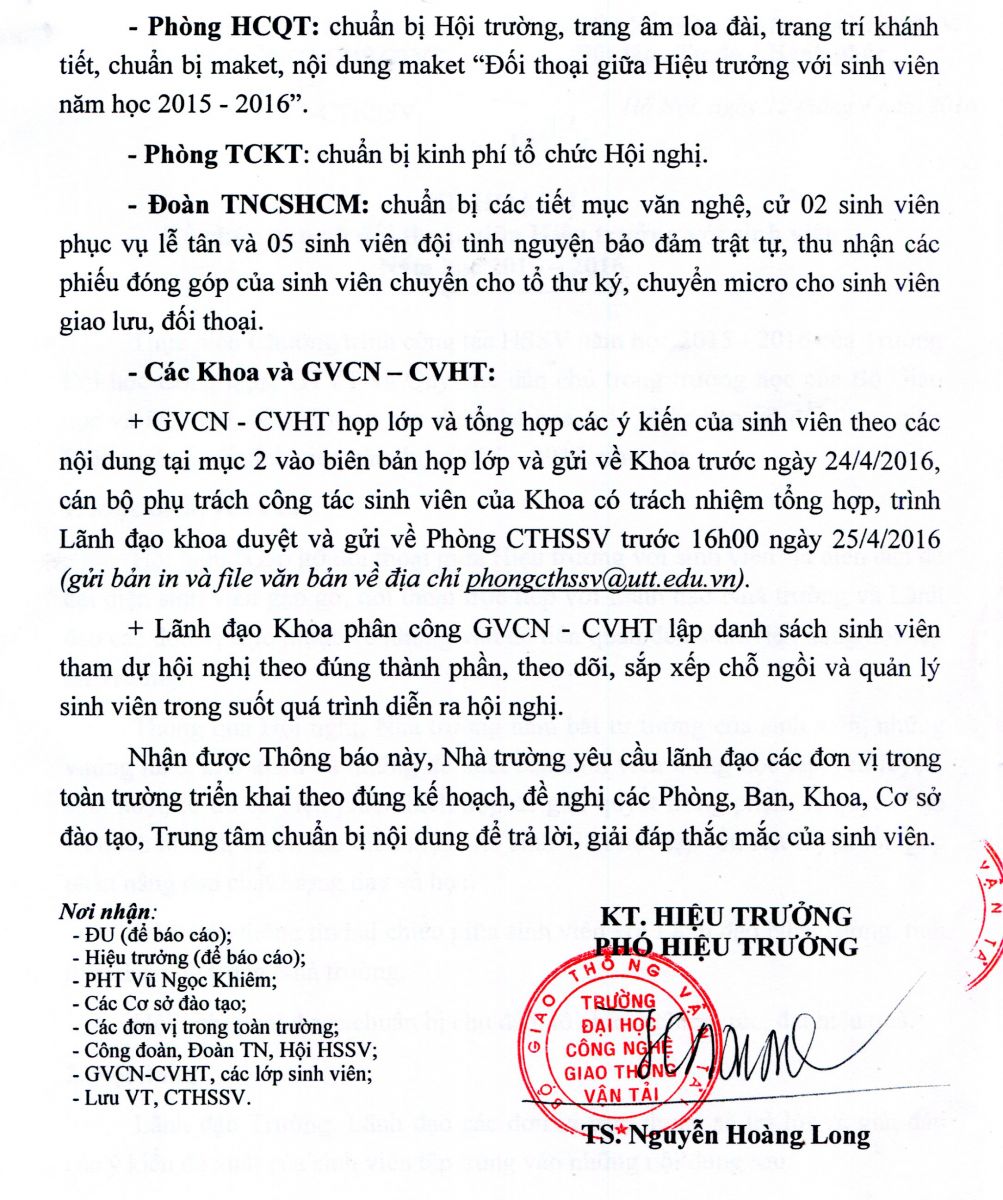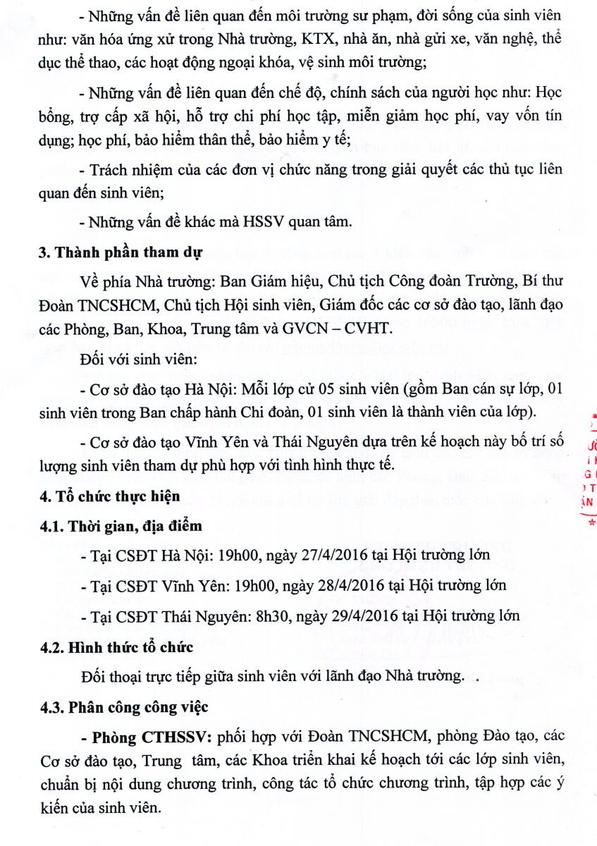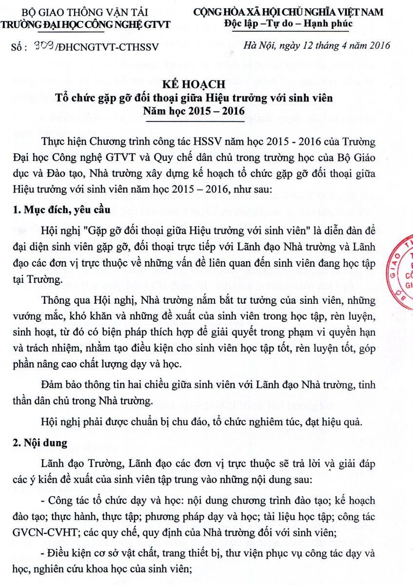 Kế hoạch tổ chức gặp gỡ đối thoại Hiệu trưởng với HSSV năm học 2015 - 2016