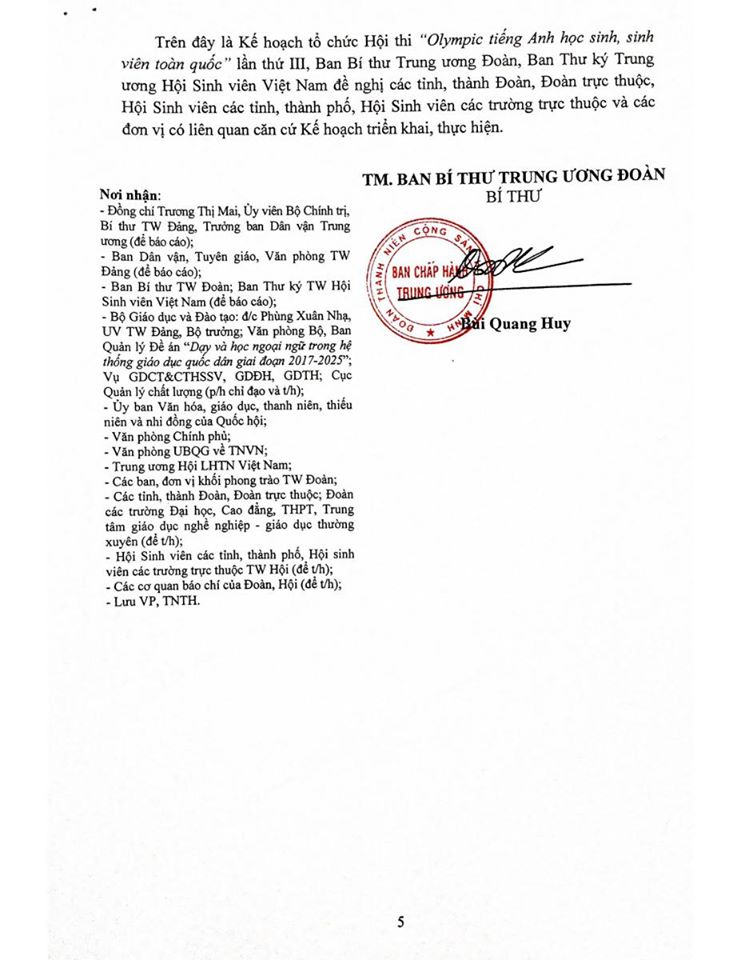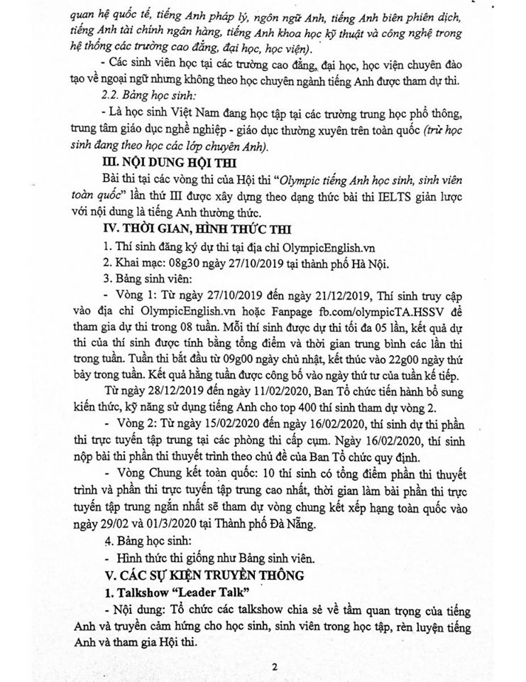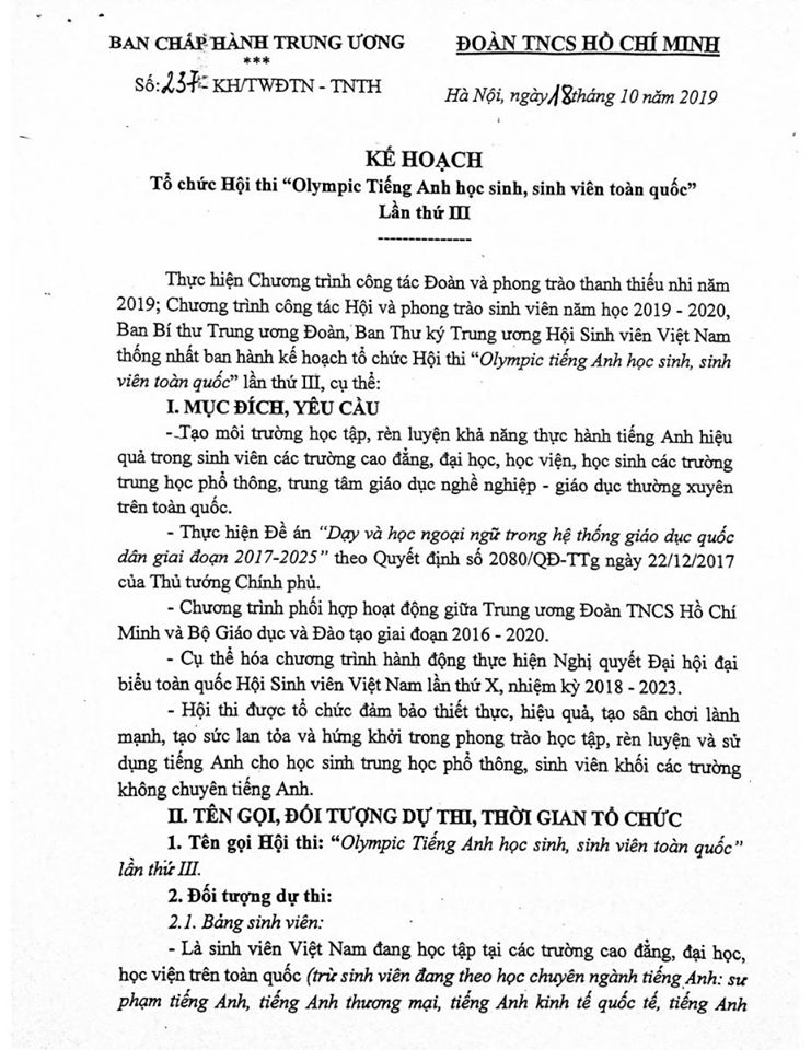 THÔNG BÁO VỀ KẾ HOẠCH TỔ CHỨC HỘI THI "OLYMPIC TIẾNG ANH HỌC SINH, SINH VIÊN TOÀN QUỐC" LẦN THỨ III