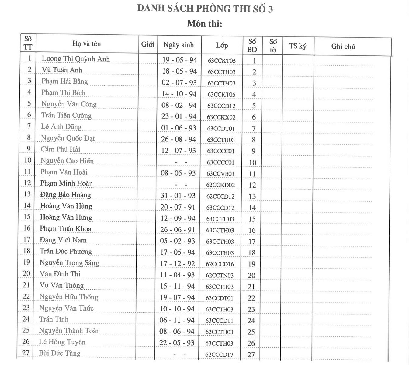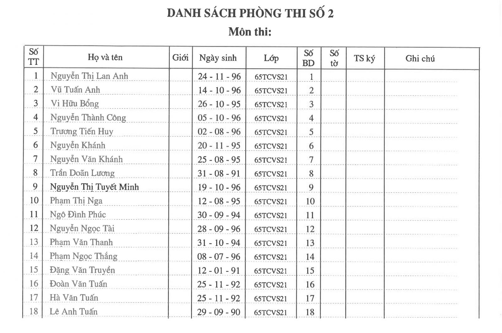 - Xét điều kiện dự thi: 28/4/2016; - Thời gian thi: - Phòng thi : Phòng học Nhà C2