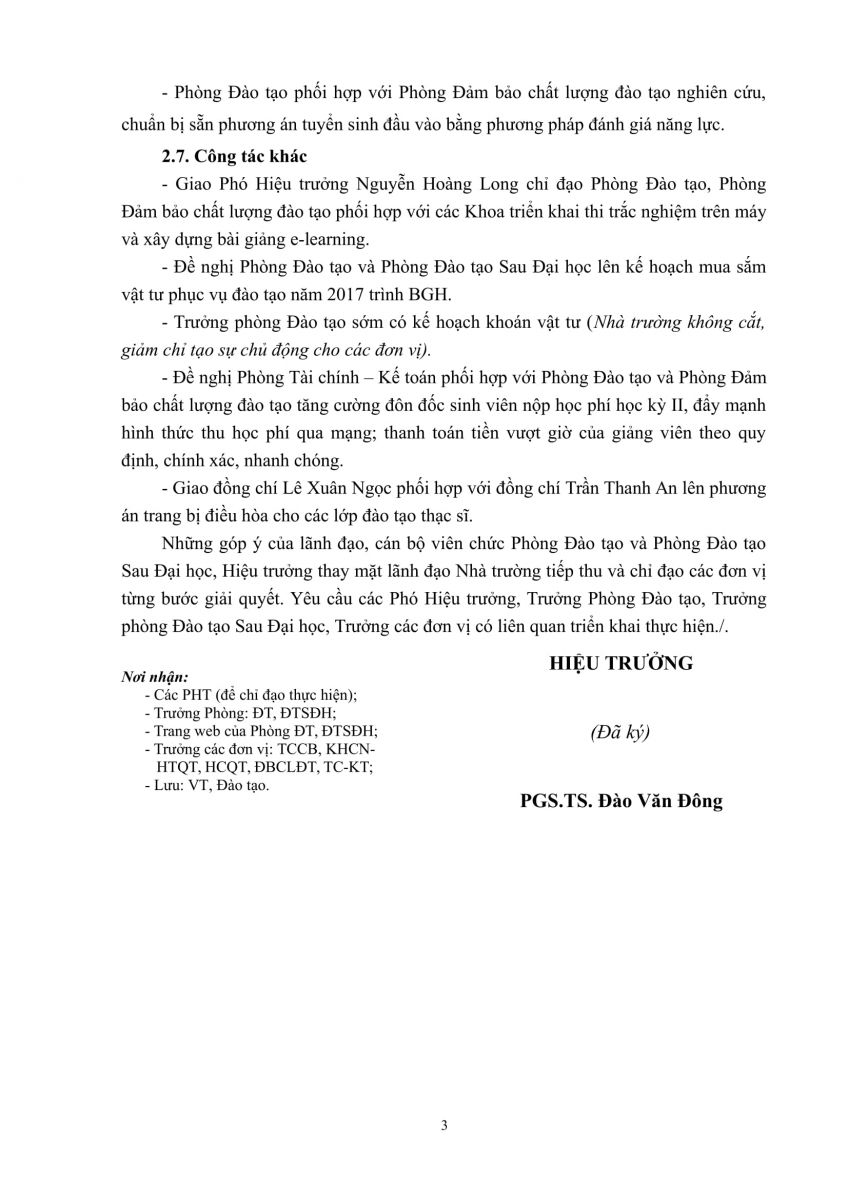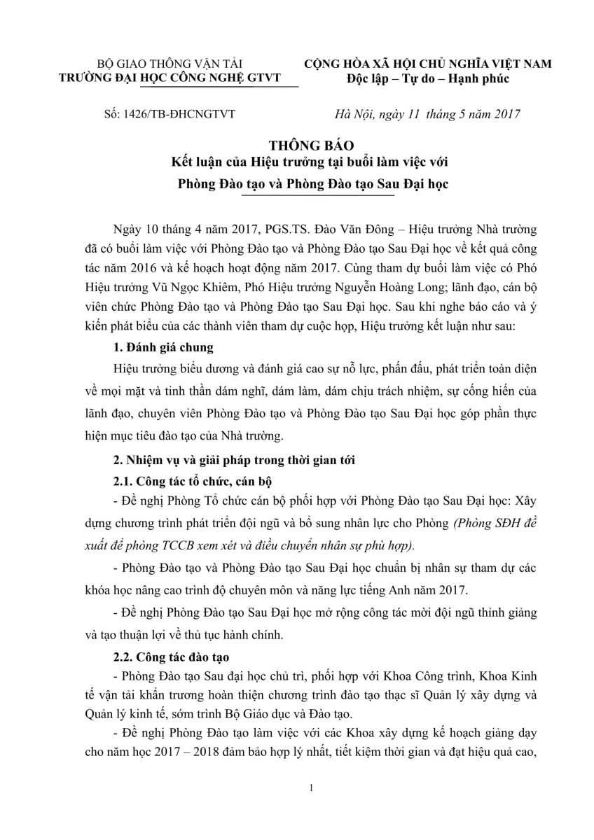 Thông báo Kết luận của Hiệu trưởng tại buổi làm việc với Phòng Đào tạo và Phòng Đào tạo Sau Đại học