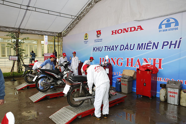 Đoàn viên hiến máu còn có cơ hội thay dầu xe miễn phí và tìm hiểu về ATGT