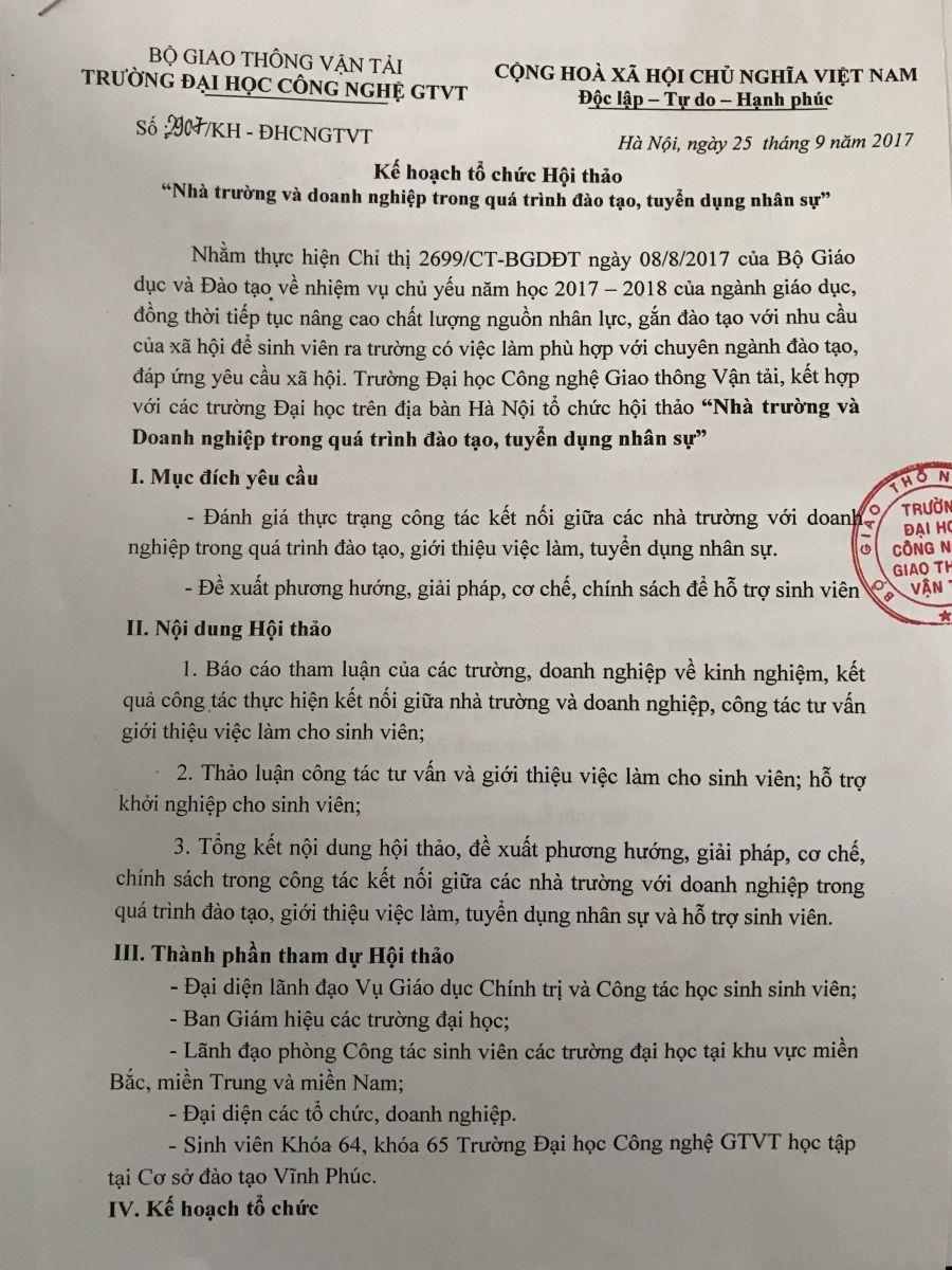 Thực hiện Chương trình công tác Thanh niên năm 2017 và kế hoạch số 454KH-ĐHCNGTVT ngày 22/07/2017 của Hiệu trưởng trường Đại học Công nghệ Giao thông vận tải về tổ chức các hoạt động Tháng Thanh niên 2017. Sáng ngày 18/03/2017 tại CSĐT Vĩnh Phúc, Đoàn thanh niên Đại học Công nghệ GTVT phối hợp với Đoàn Thanh niên Bộ Giao thông vận tải, Đoàn Thanh niên công ty cổ phần Fecon, Đoàn Thanh niên Tổng công ty tư vấn thiết kế GTVT Tedi đã tổ chức lễ ra quân trồng, chăm sóc hàng cây Thanh niên và giao lưu VH-VN-TDTT hưởng ứng tháng Thanh niên năm 2017, chào mừng 86 năm Ngày thành lập Đoàn TNCS Hồ Chí Minh (26/3/1931-26/3/2017), chào mừng Đại hội Đoàn các cấp hướng tới Đại hội Đại biểu Đoàn TNCS Hồ Chí Minh Thành phố Hà Nội.
