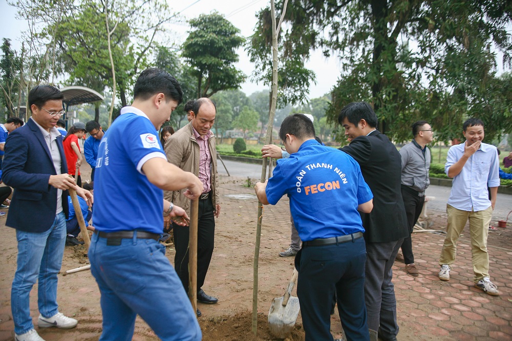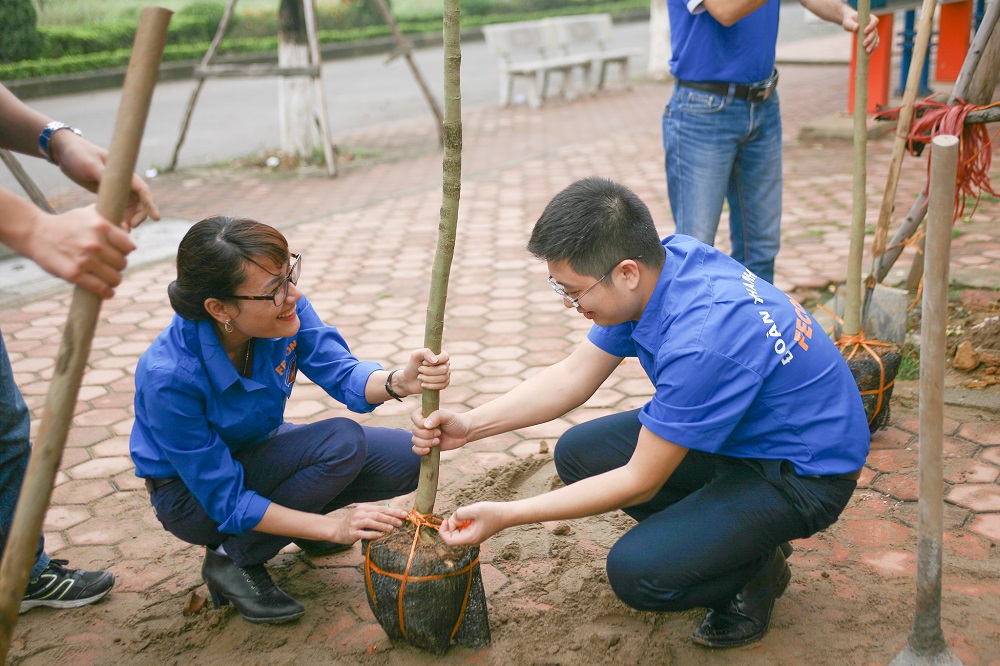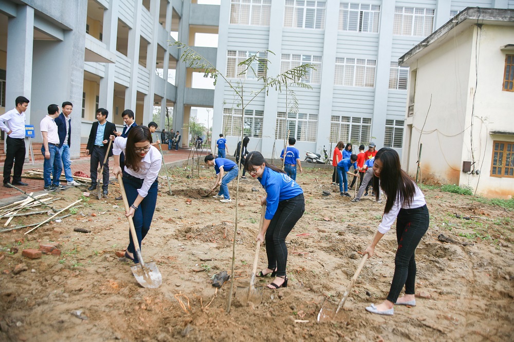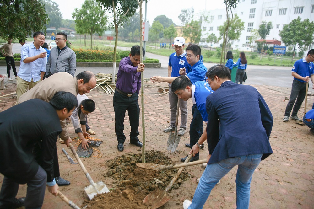 Ngay sau đó; các vị đại biểu, lãnh đạo Nhà trường cùng các đoàn viên thanh niên đã chung tay trồng được 116 cây xanh bao gồm 50 cây Xà cừ, 20 Lát xoan, 30 cây Phượng và 16 gốc cây Sưa trong khuôn viên nhà trường.