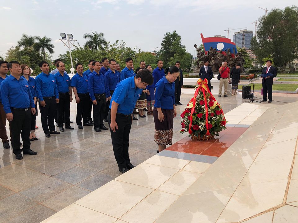 Đoàn Tình nguyện đặt vòng hoa tại tượng đài Kaysone - Lào