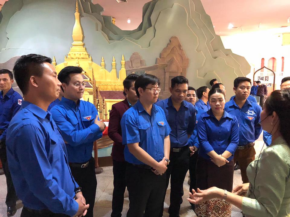 Đoàn tình nguyện Thủ đô chụp ảnh lưu niệm tại Bảo tàng Kaysone - Lào