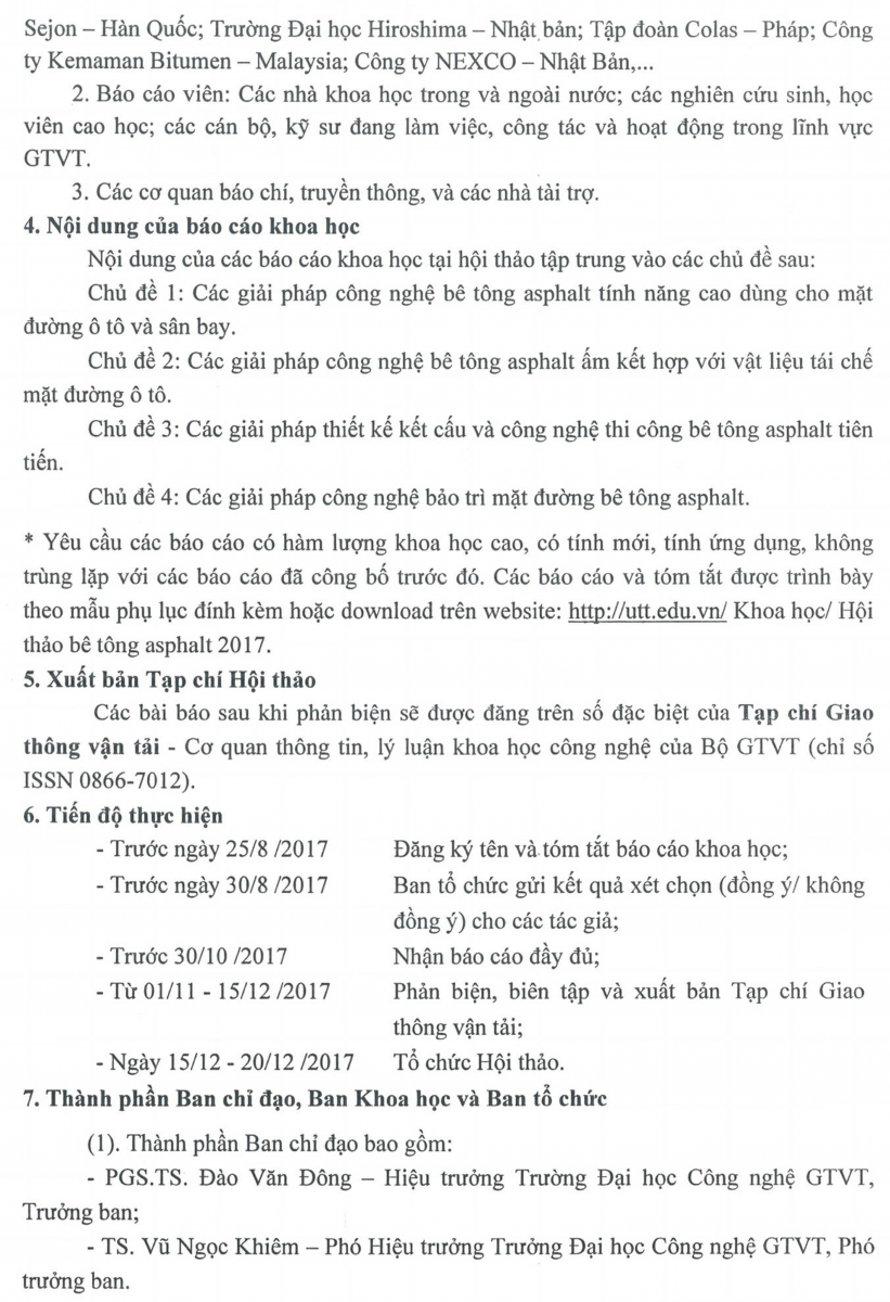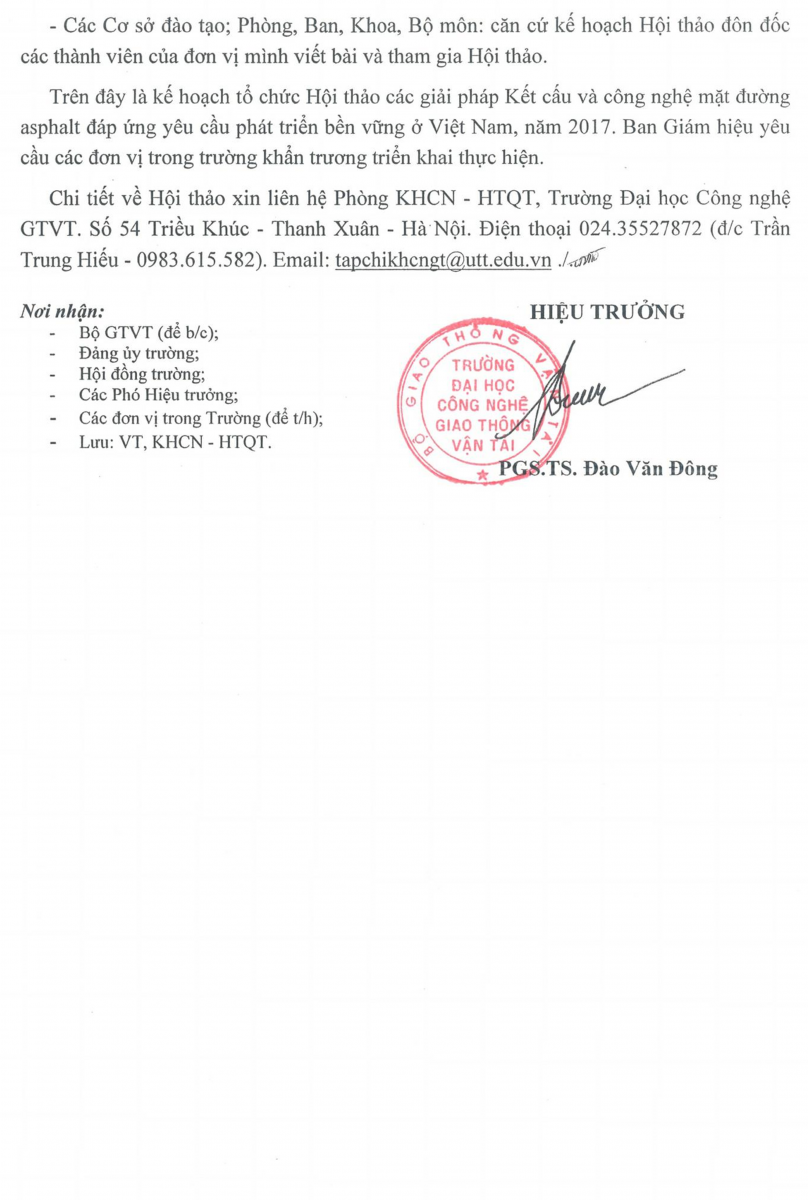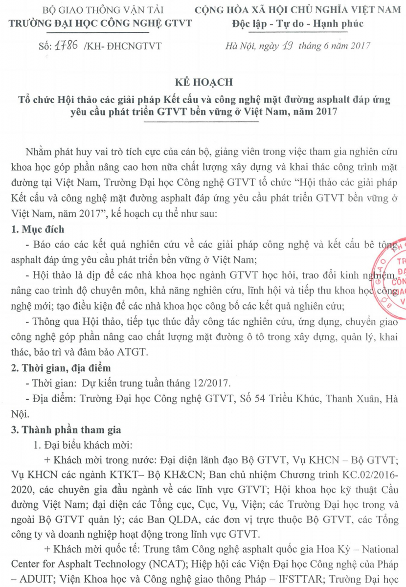 Kế hoạch Hội thảo các giải pháp Kết cấu và Công nghệ mặt đường asphalt đáp ứng yêu cầu phát triển GTVT bền vững ở Việt Nam, năm 2017