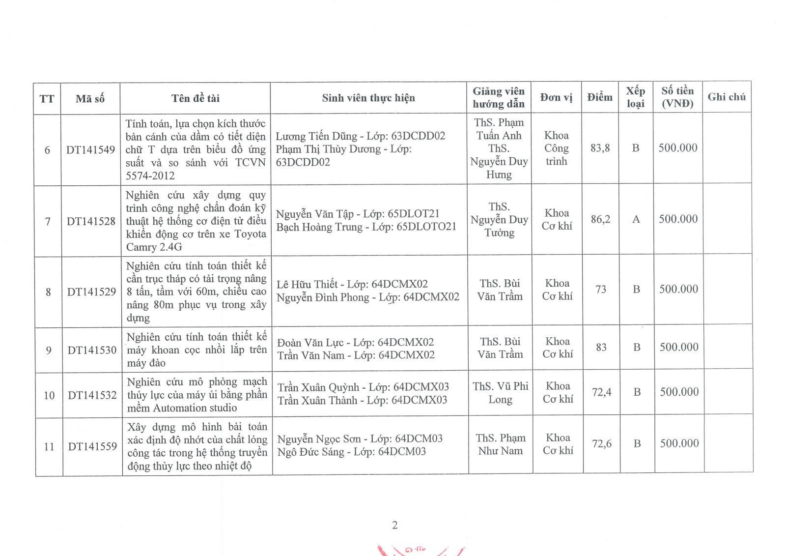 Quyết định khen thưởng thành tích sinh viên NCKH cấp Trường năm học 2015-2016 (đợt 2)