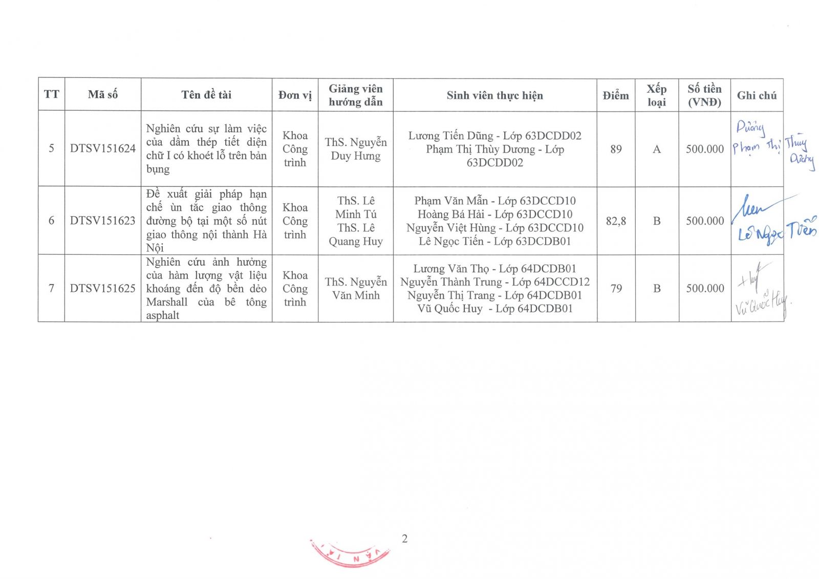 Quyết định khen thưởng thành tích sinh viên NCKH cấp Trường năm học 2015-2016 (đợt 2)