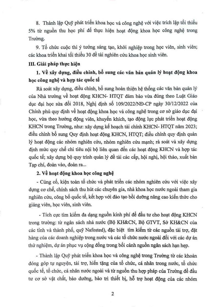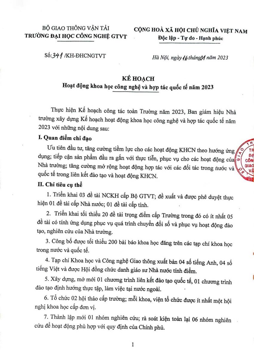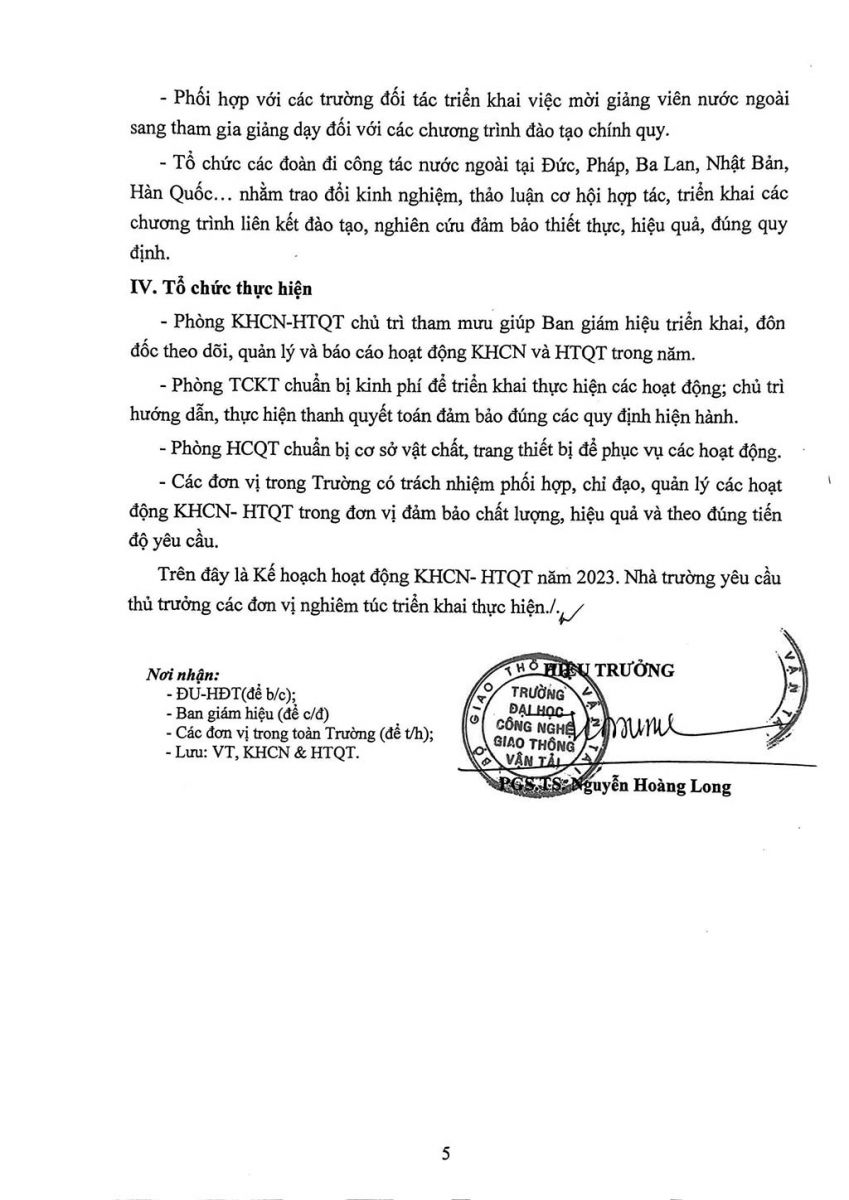 Kế hoạch hoạt động khoa học công nghệ và hợp tác quốc tế năm 2023