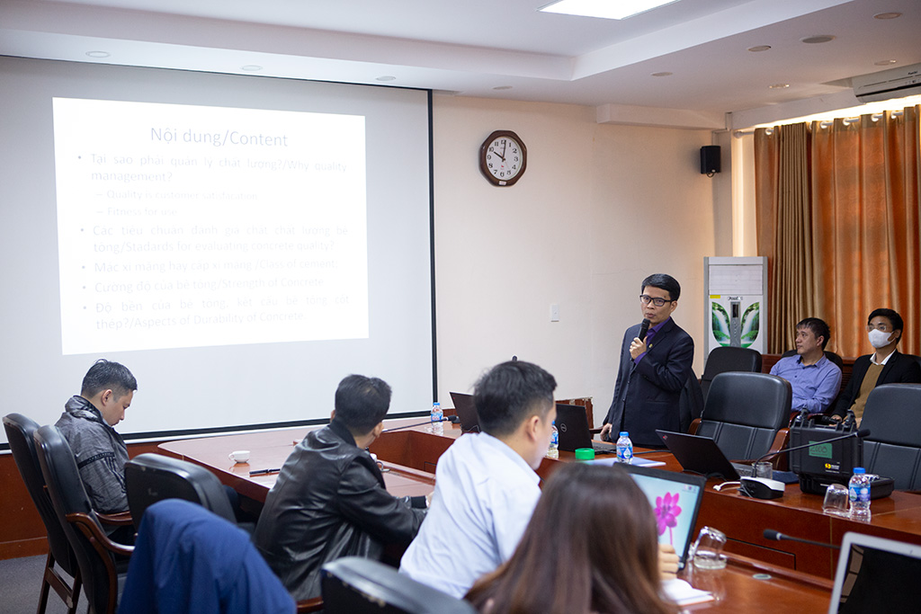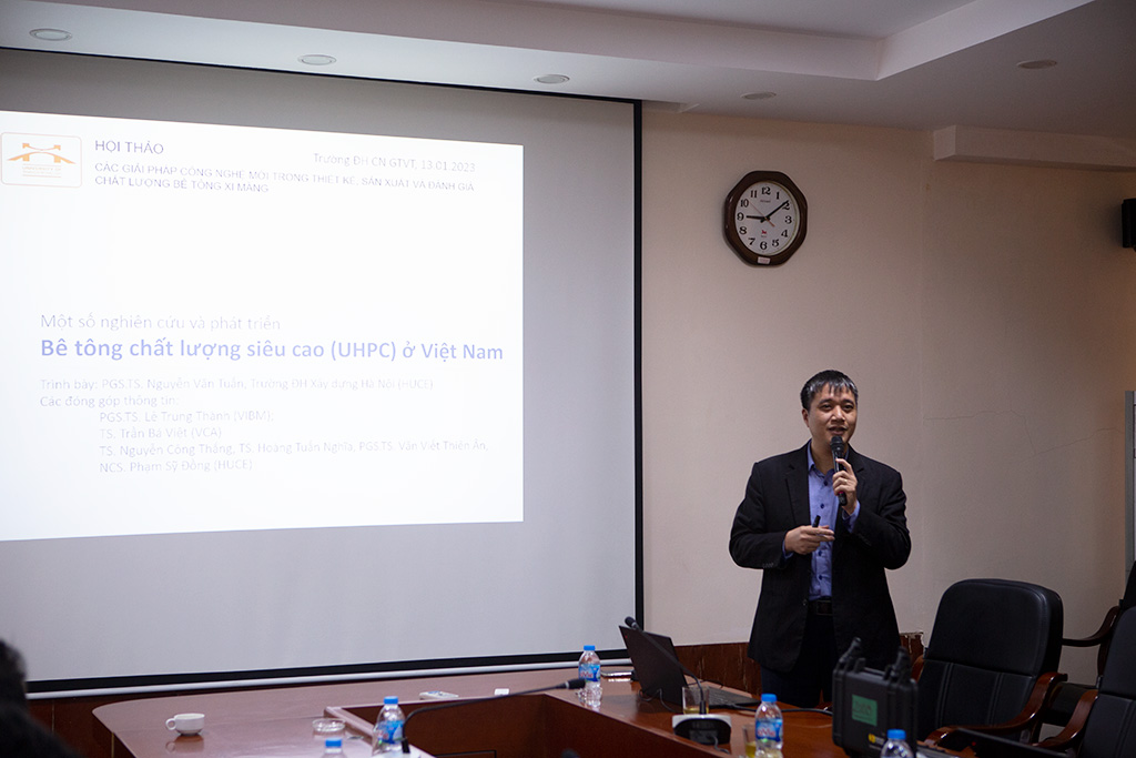 Hội nghị đã được nghe 03 báo cáo gồm "Một số nghiên cứu và phát triển bê tông chất lượng siêu cao ở Việt Nam" do PGS. TS. Nguyễn Văn Tuấn - Trường Đại học Xây dựng Hà Nội trình bày; "Đánh giá chất lượng vật liệu gốc xi măng bằng phương pháp xác suất" do PGS. TS. Nguyễn Thanh Sang - Trường Đại học Giao thông vận tải trình bày và "Công nghệ đánh giá chất lượng bê tông theo phương pháp không phá hủy bằng phương pháp xịt nước" do TS. Nguyễn Hữu May - Trường Đại học Công nghệ Giao thông Vận tải trình bày.