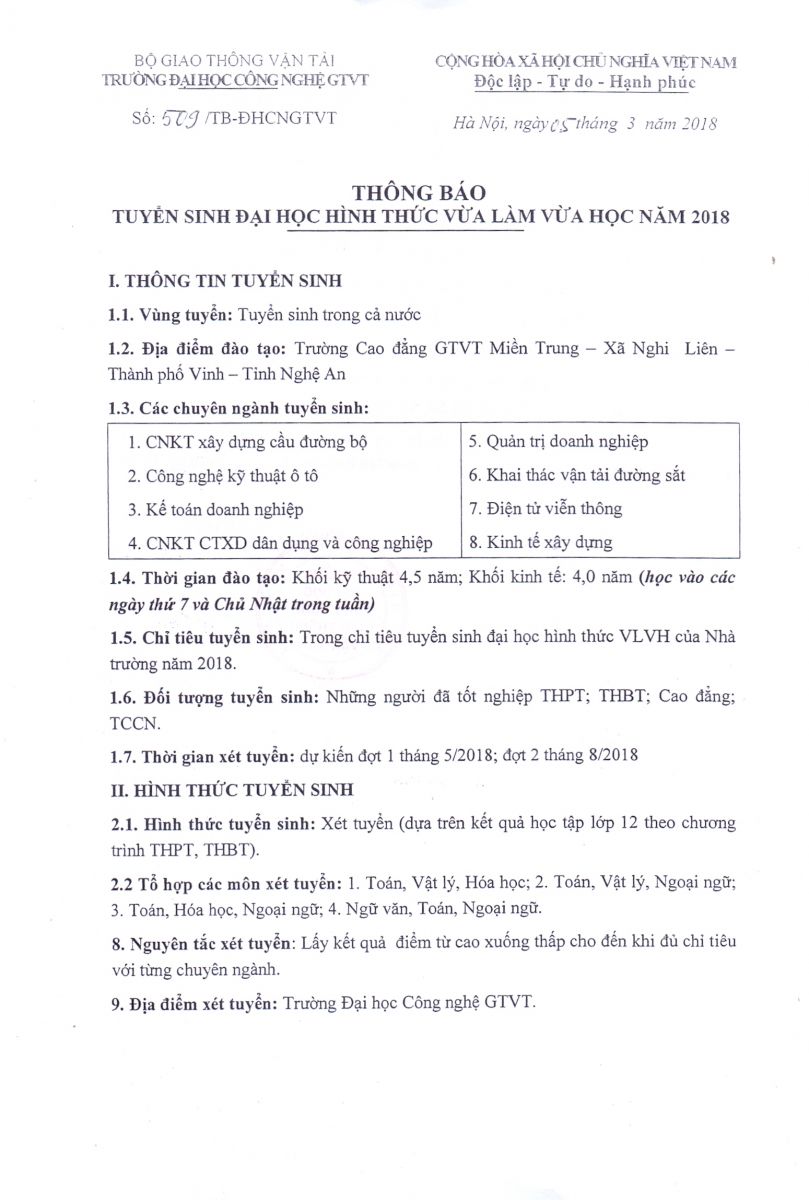 Thông báo tuyển sinh đại học hình thức vừa làm vừa học năm 2018 - Địa điểm đào tạo tại...