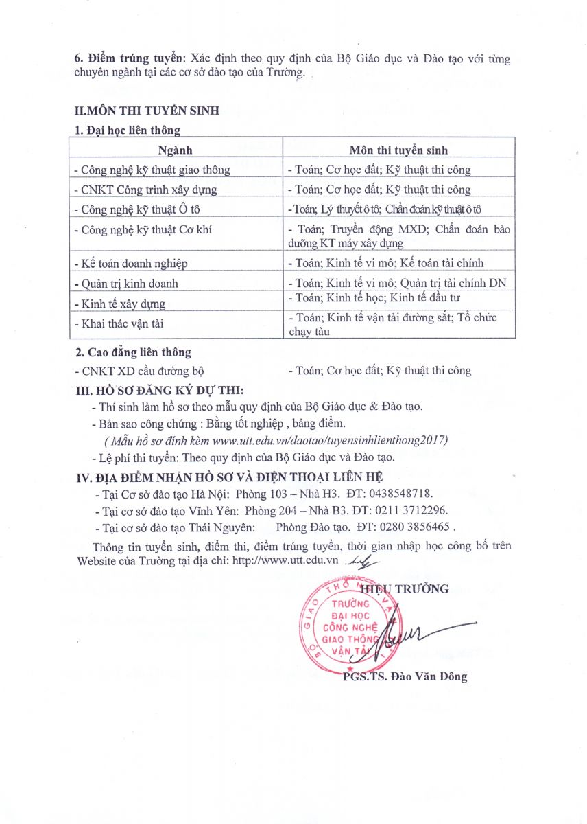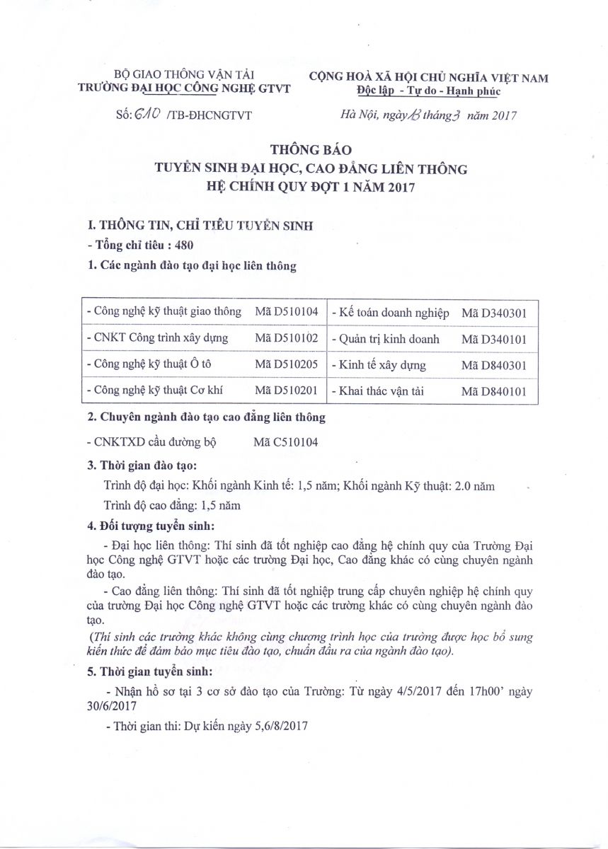 Thông báo tuyển sinh đại học, cao đẳng liên thông hệ chính quy đợt 1 năm 2017
