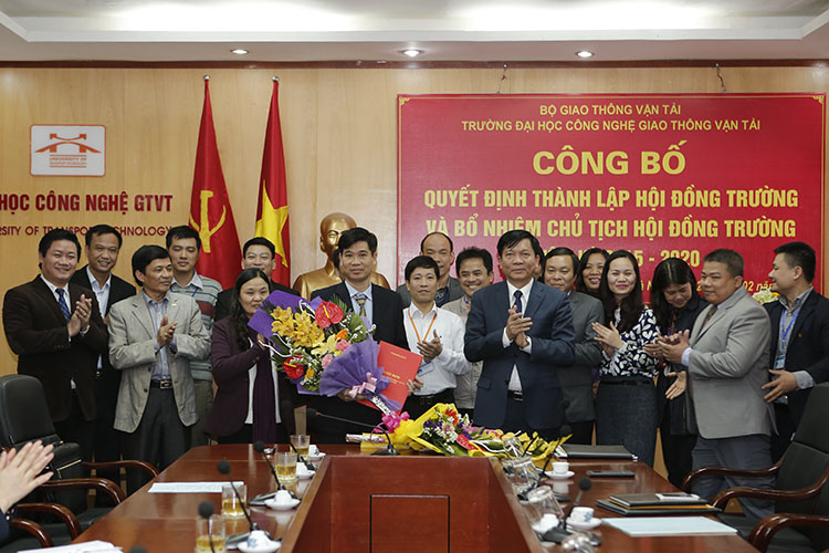 Chiều ngày 29/02/2016, tại Trường Đại học Công nghệ Giao thông vận tải đã diễn ra lễ công bố Quyết định thành lập Hội đồng Trường và Quyết định bổ nhiệm TS. Nguyễn Mạnh Hùng - Trưởng Khoa Đào tạo tại chức giữ chức Chủ tịch Hội đồng Trường.