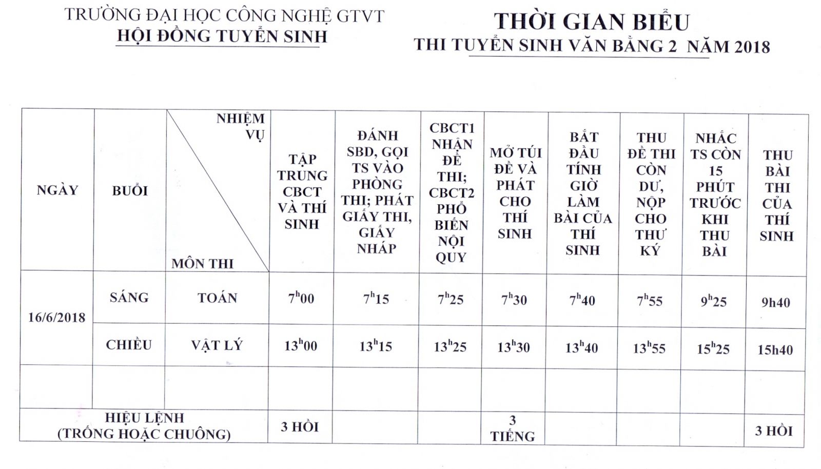 THÔNG BÁO THỜI GIAN BIỂU VÀ SƠ ĐỒ PHÒNG THI TUYỂN SINH VĂN BẰNG 2 NĂM 2018
