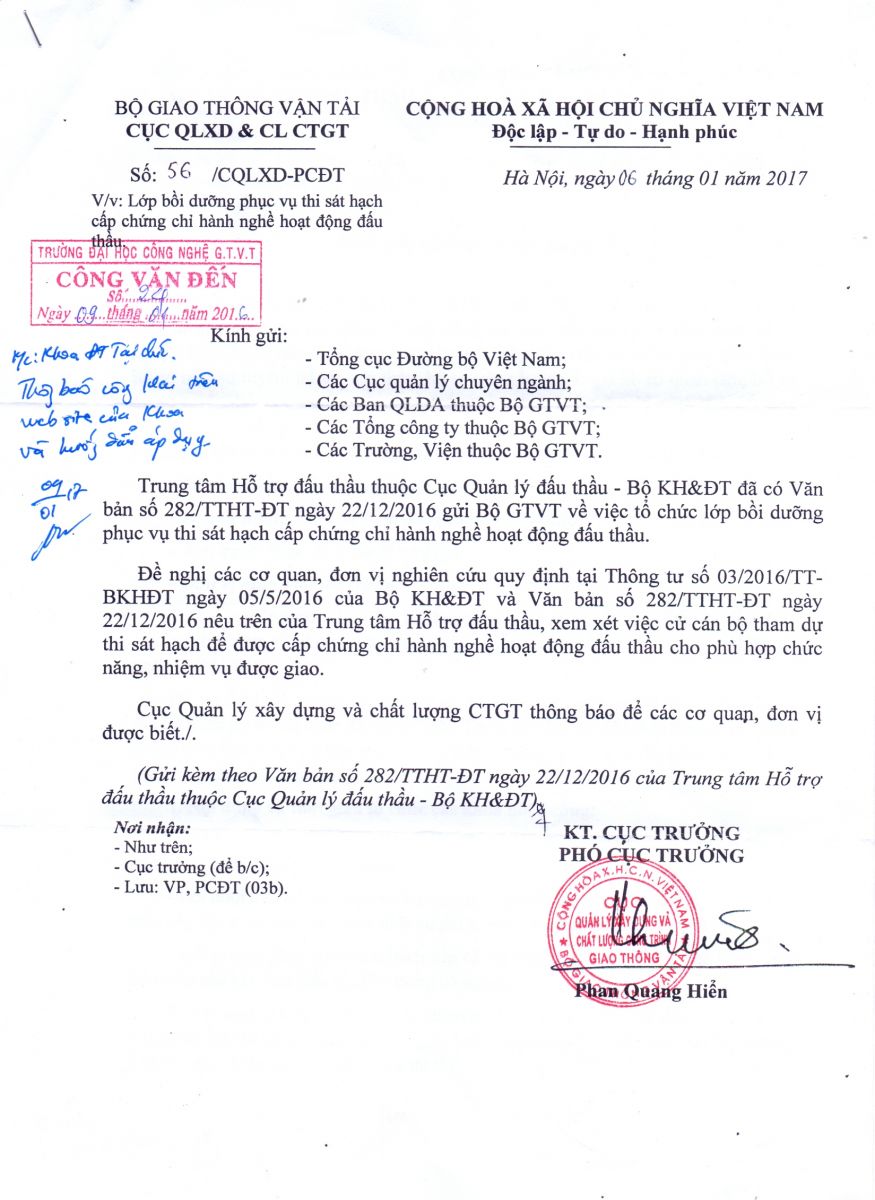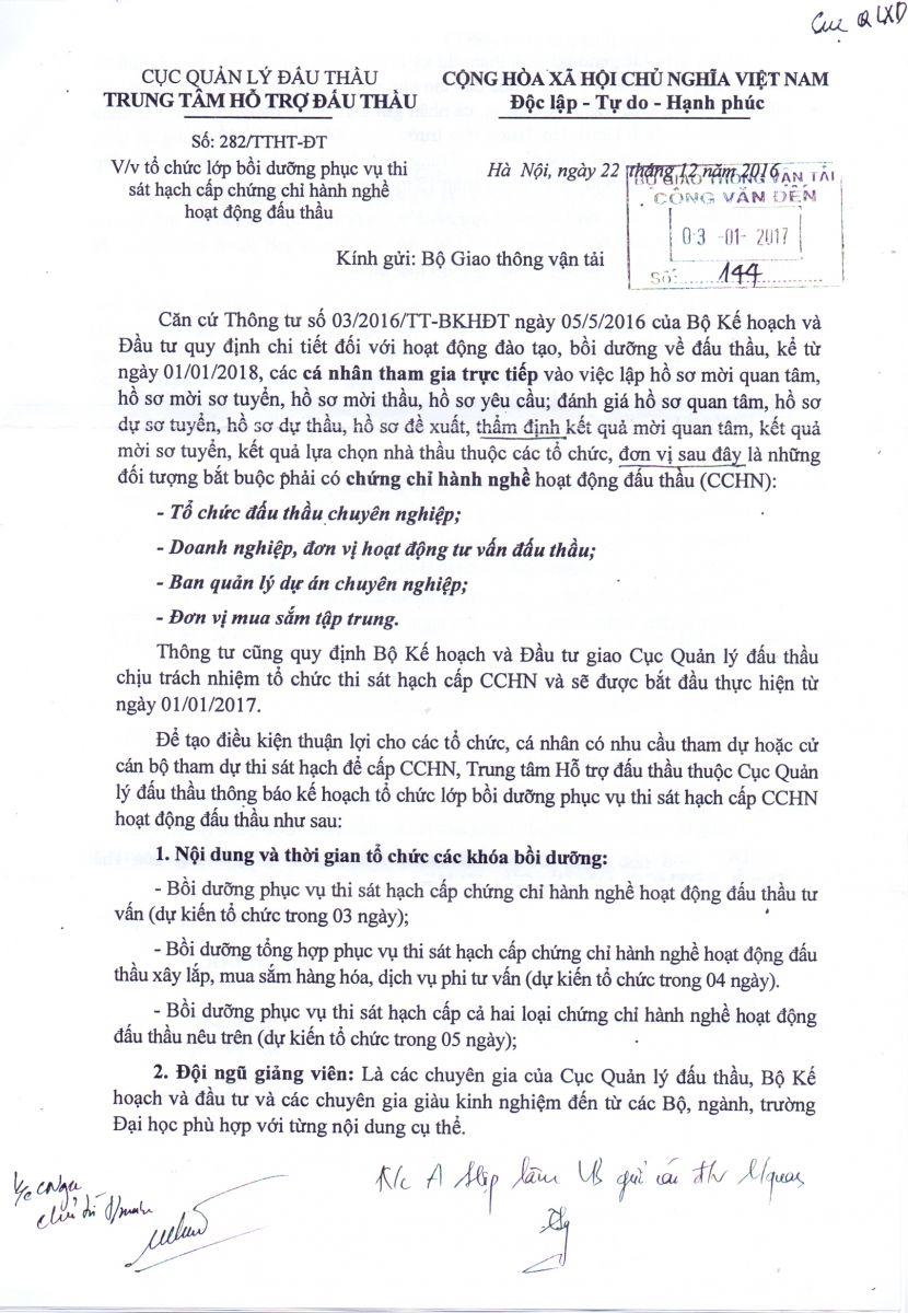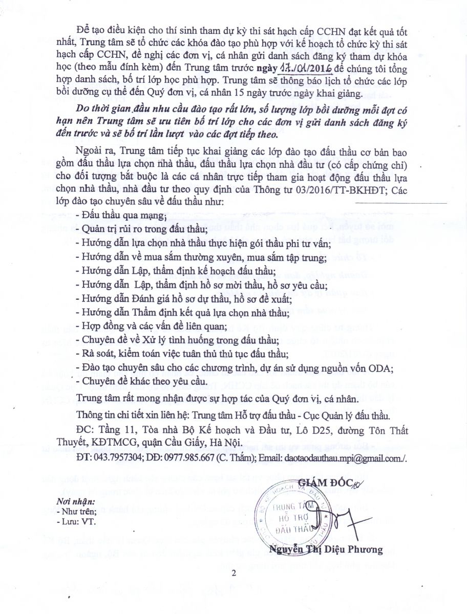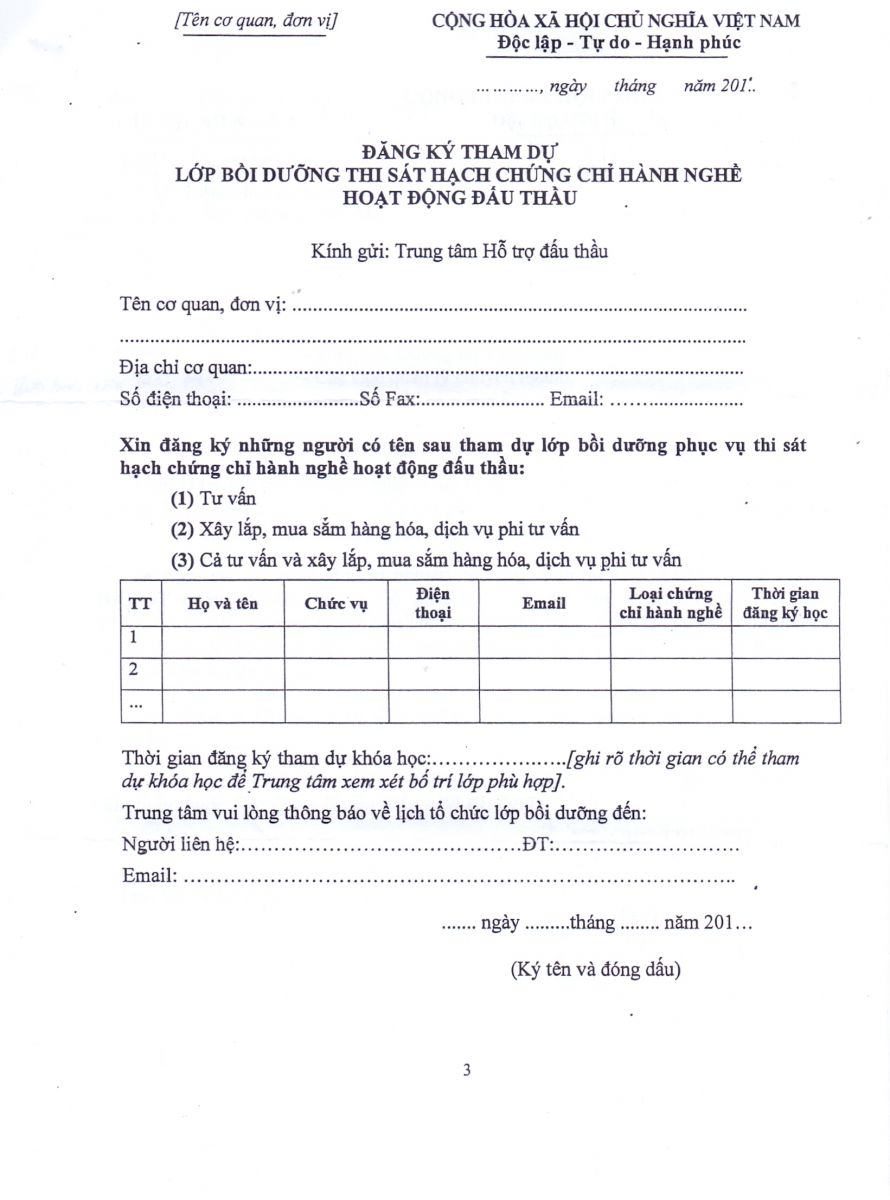 Thông báo về lớp bồi dưỡng phục vụ thi sát hạch cấp chứng chỉ hành nghề hoạt động đấu thầu