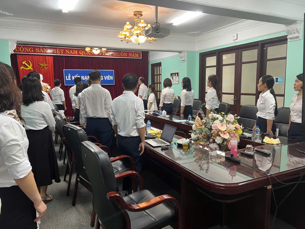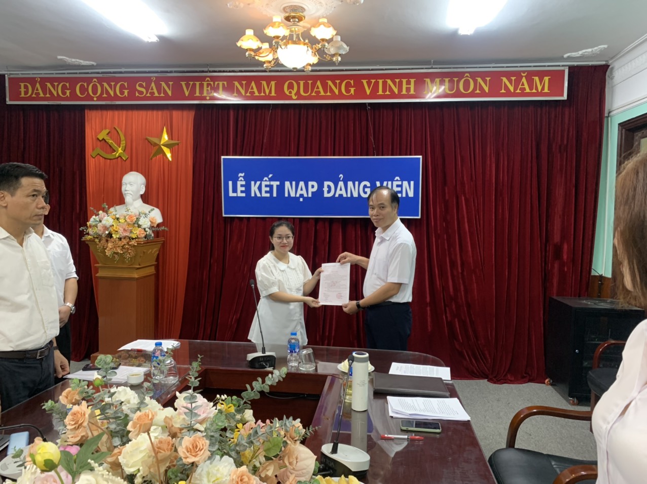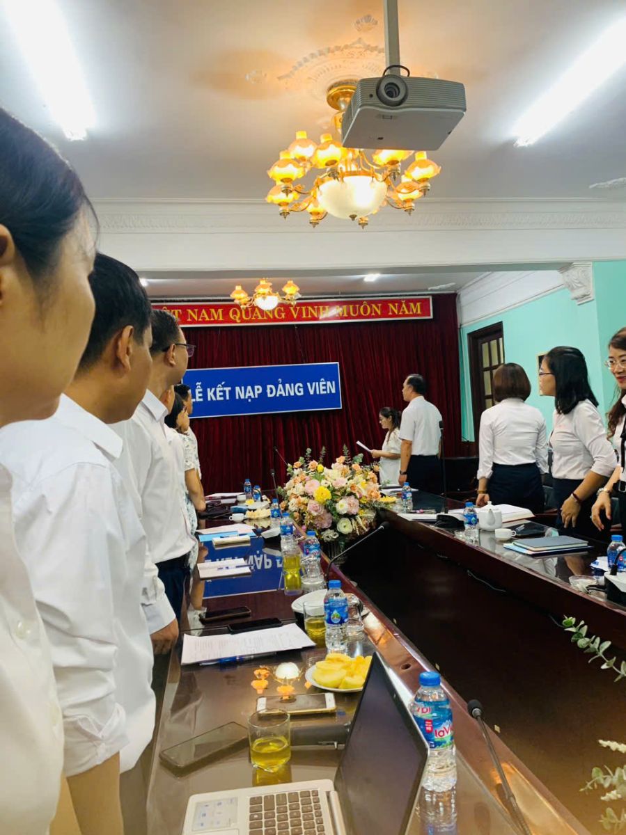 Dưới cờ tổ quốc, cờ đảng và chân dung Chủ tịch Hồ Chí Minh cùng với sự chứng kiến của các đảng viên trong chi bộ, đồng chí đảng viên mới đã đọc lời tuyên thệ và sẽ luôn luôn cố gắng phấn đấu rèn luyện về chính trị, đạo đức, lối sống, chuyên môn nghiệp vụ để góp sức mình hoàn thành tốt những nhiệm vụ chính trị của chi bộ và xây dựng chi bộ ngày càng vững mạnh.