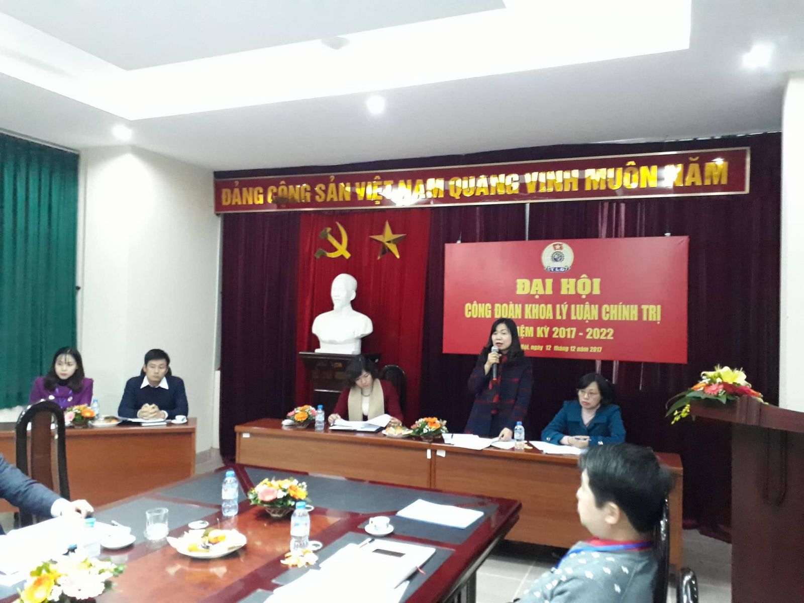 Ngày 12/12/2017, Công đoàn Khoa Lý luận chính trị tổ chức Đại hội và đề ra phươg hướng hoạt động nhiệm kỳ 2017-2022. Dự Đại hội có đồng chí Phùng Chu Hoàng, đồng chí Lê Hoàng Anh là ủy viên Ban chấp hành Công đoàn Trường và toàn thể đoàn viên Công đoàn Khoa LLCT.