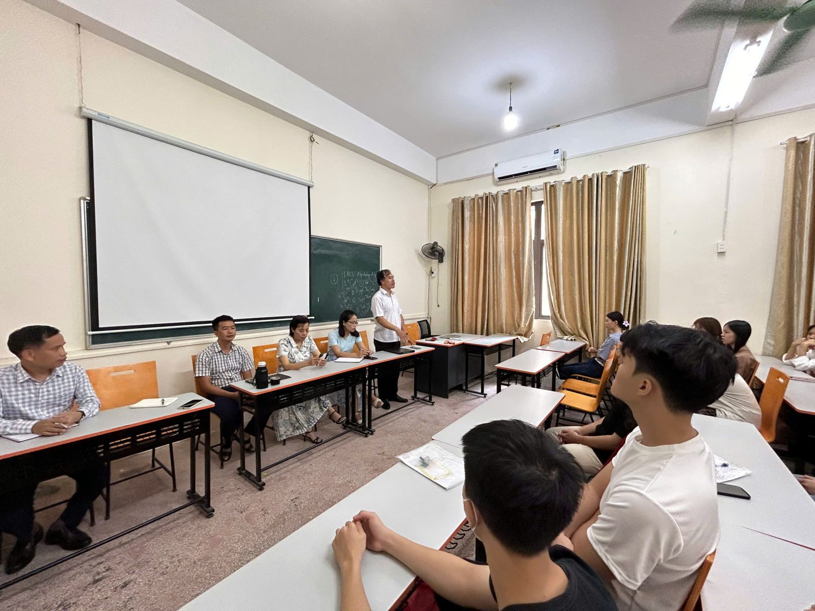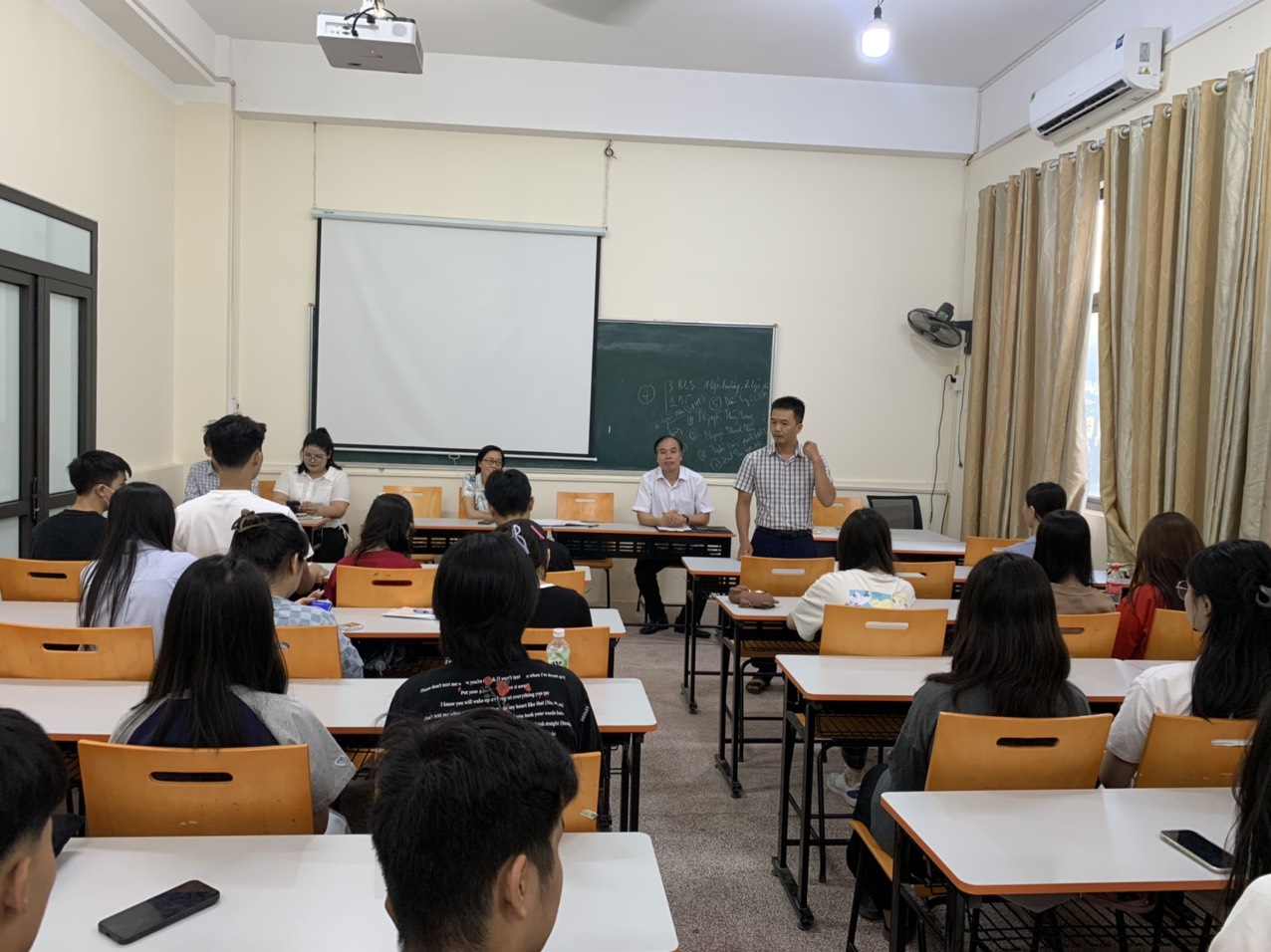 Ảnh 2: thầy giáo TS. Trần Văn Tuân, trưởng bộ môn Luật chia sẻ và thể hiện tinh thần, trách nhiệm luôn luôn đồng hành cùng các tân sinh viên.