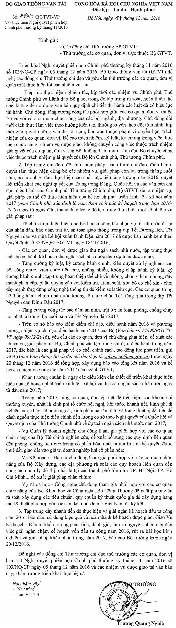 Thông báo thực hiện Nghị quyết phiên họp Chính phủ thường kỳ tháng 11/2016